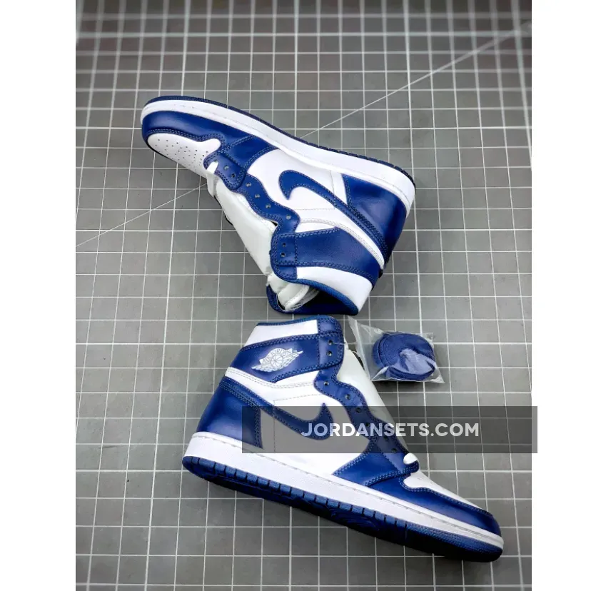 Dressed in its original color scheme of White and Storm Blue. This classic Air Jordan 1 features a two-tone mix of White with Storm Blue trim overlay.