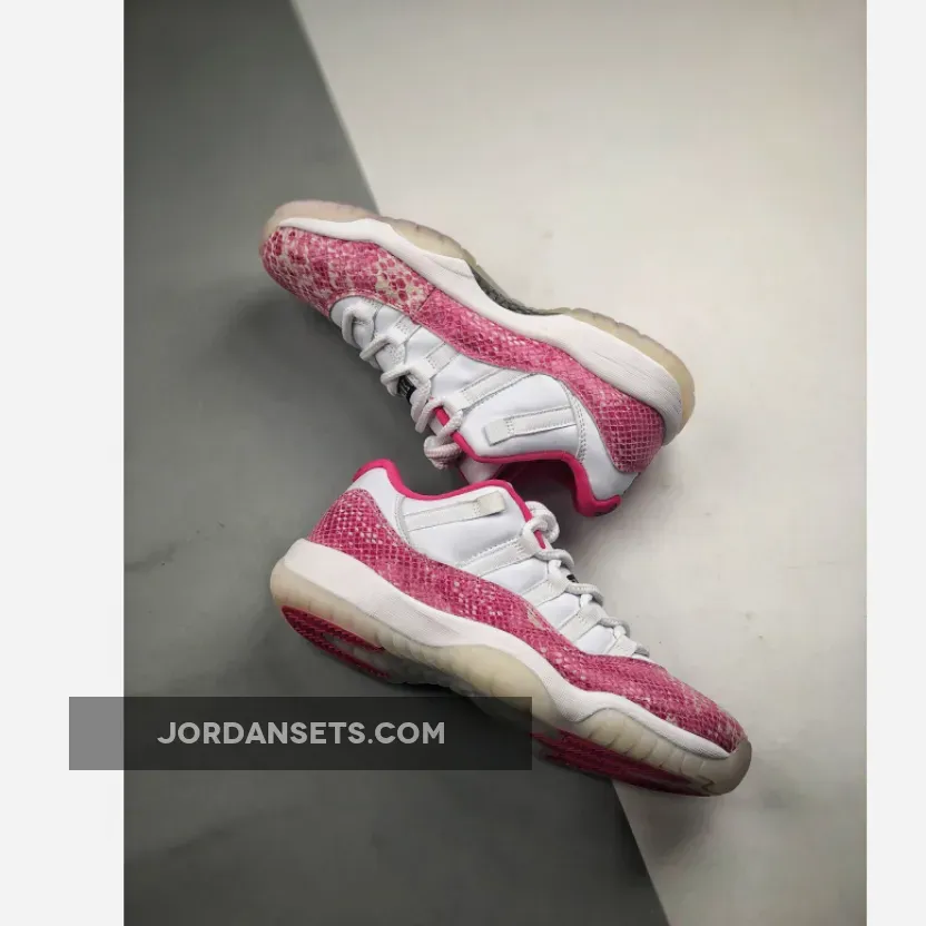 Soak up the beauty of Womens Air Jordan 11 Low Pink Snakeskin and look out for the haters in the streets. Although this crep is not likely to have any competitor other than the sibling kick dropping with Navy Snakeskin. It is far from subtlety, and it also has more upgrades and engineering for it to be a perfect foot-buddy for the ladies. It’s the most contemporary design from His Airness’s brilliance so; it’s going to be the deal-breaker for many. The Snakeskin theme is going quite trendy this season. Who are we kidding? Animalistic vibes and jungle appearance is always a smash hit. This popsicle pink is just as lethal as the reptiles. Besides, the similar themes with different colour palettes are no new news for sneak freaks.