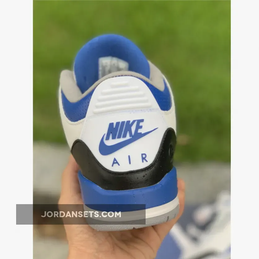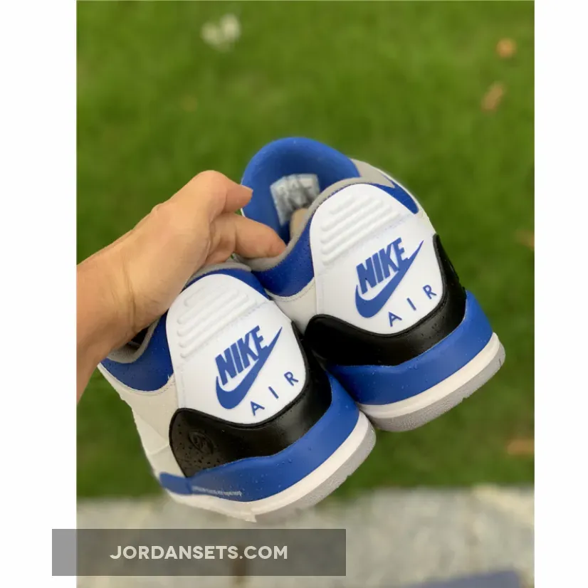 Created for designer Hiroshi Fujiwara of Fragment Designs, this previously unseen Air Jordan 3 Retro comes in premium white tumbled leather with blue accents on the midsole, Jumpman logo on the tongue and Nike Air branding on the heel. Replacing the signature elephant print on the toe cap and heel counter is smooth black leather along with a Fragment lightning bolt logo stamped on the lateral side of the heel.