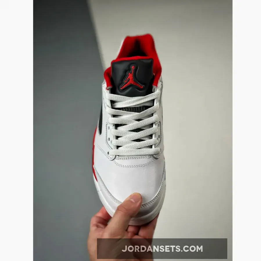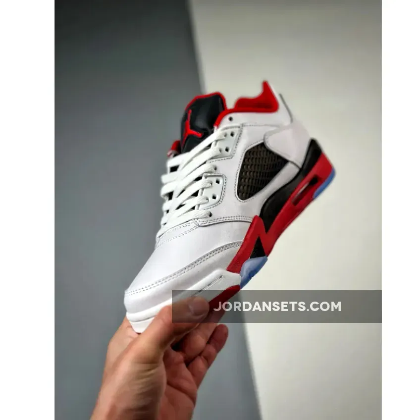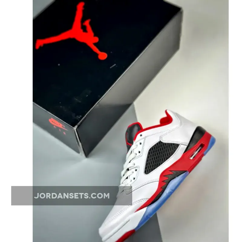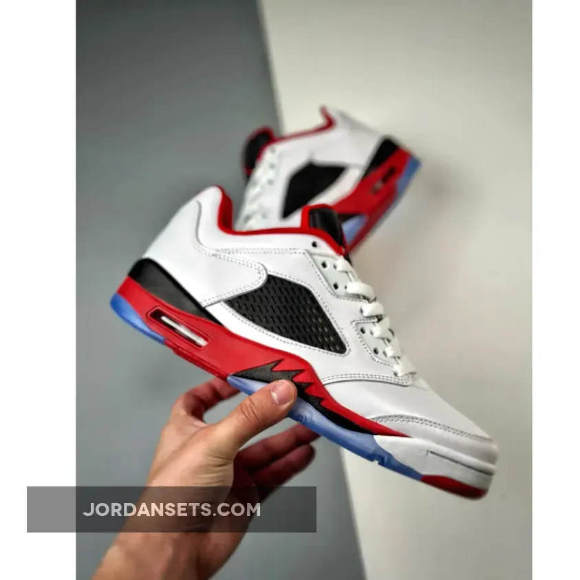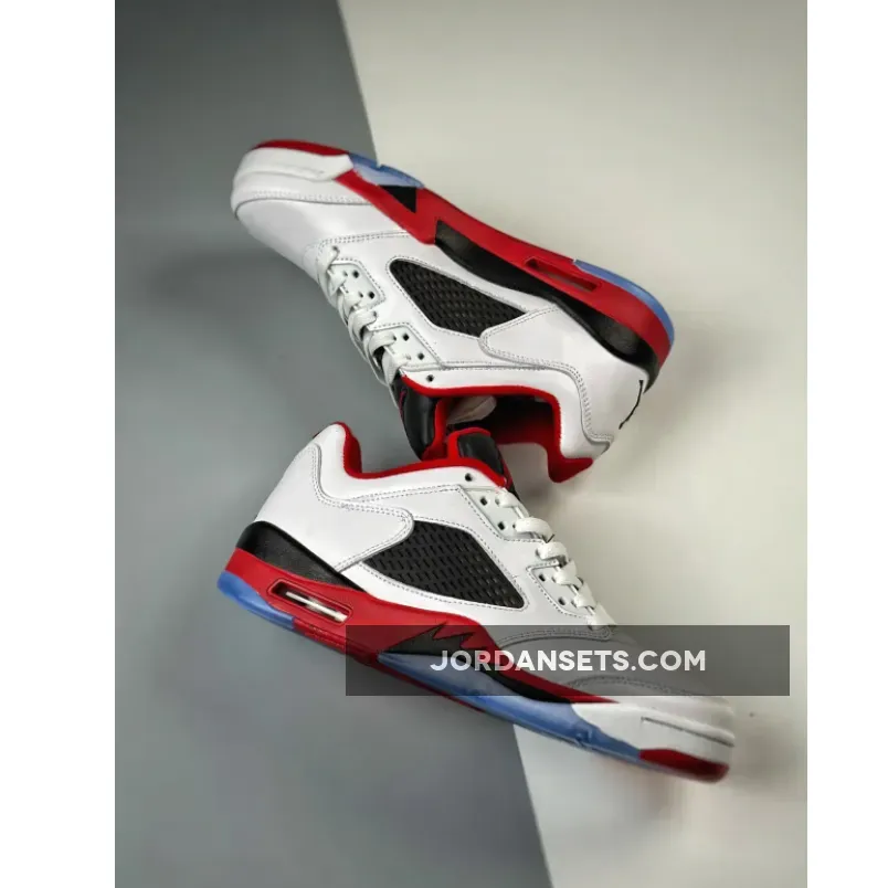 Released in March 2016, the Nike Air Jordan 5 Low ‘Fire Red’ 2016 features a white leather upper with a black mesh panel, instead of the usual clear panel, and Fire Red accents. The low-top design also includes a Jumpman logo on the tongue and heel and an ice blue translucent outsole.