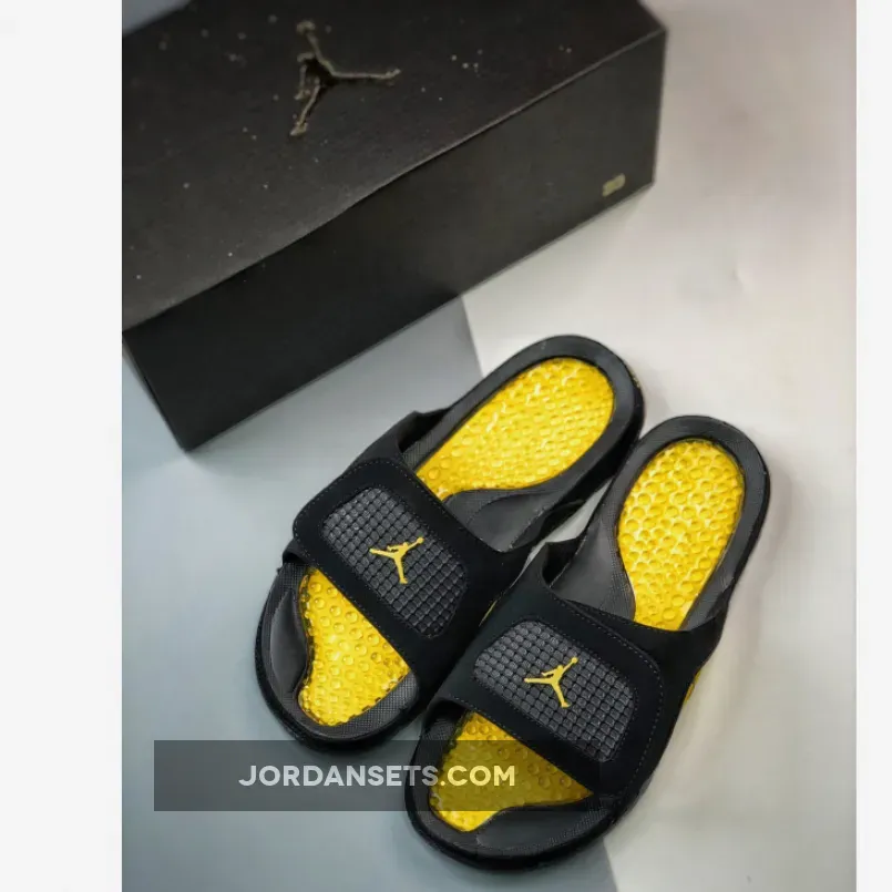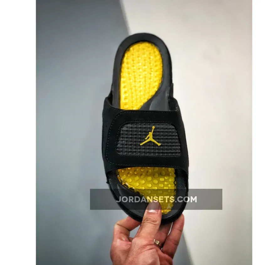 Tags: 532225-017, Black, Hydro, Jordan, jordan hydro, Slide, Thunder, Yellow, yellow thunder 4s