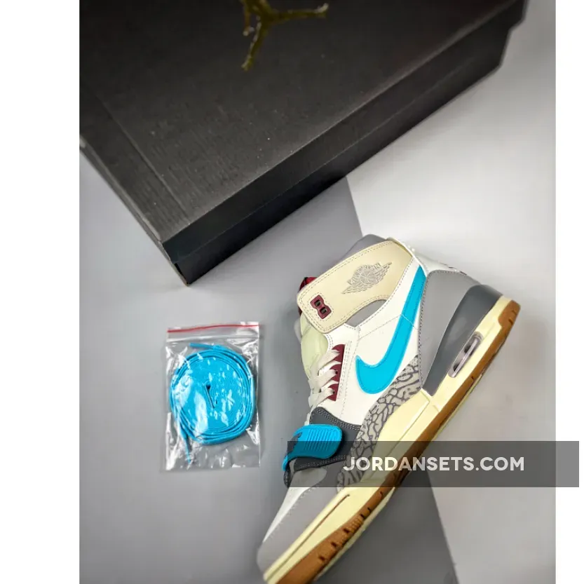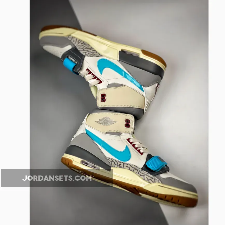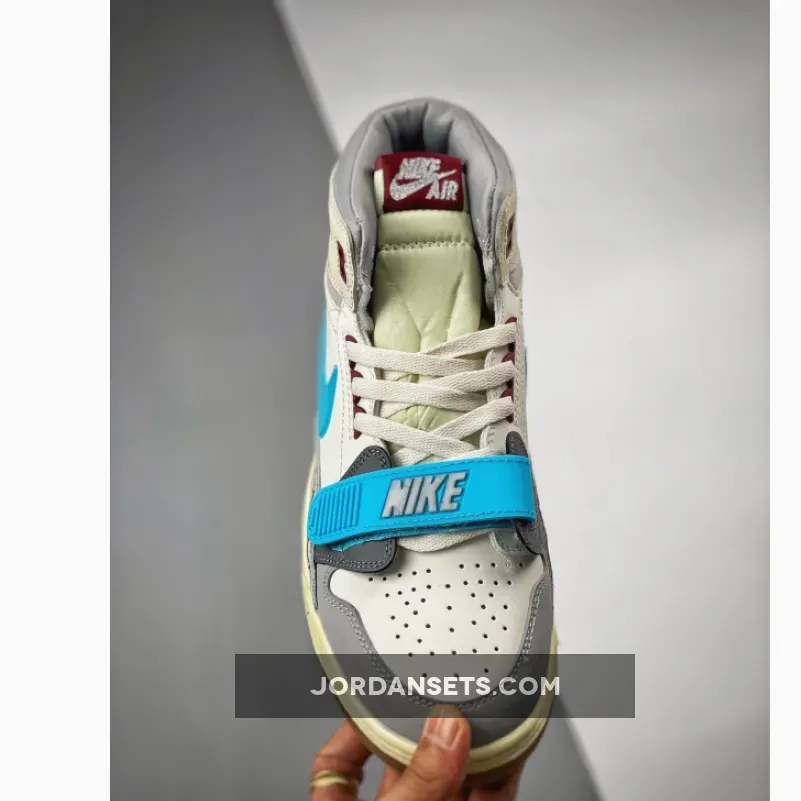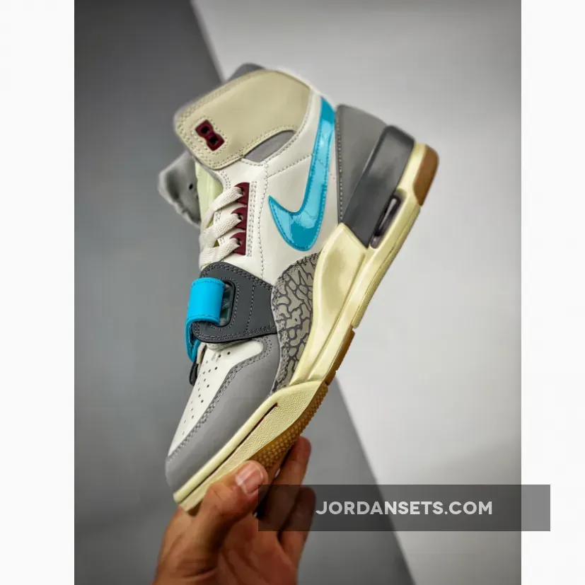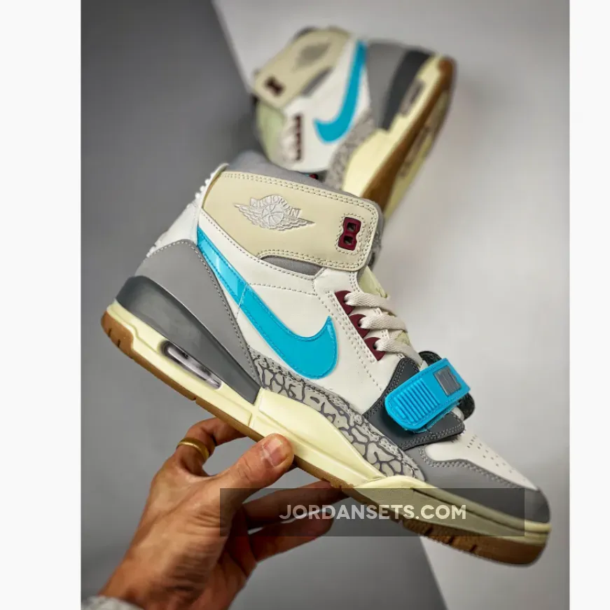 Keep your style cool and fresh with the Jordan Legacy 312 Blue Grey White. A splash of bright colour is added through the cyan-hued forefoot strap and Nike Swoosh. Meanwhile, the plush collar is supported by a neutral Air Jordan-branded grey overlay.