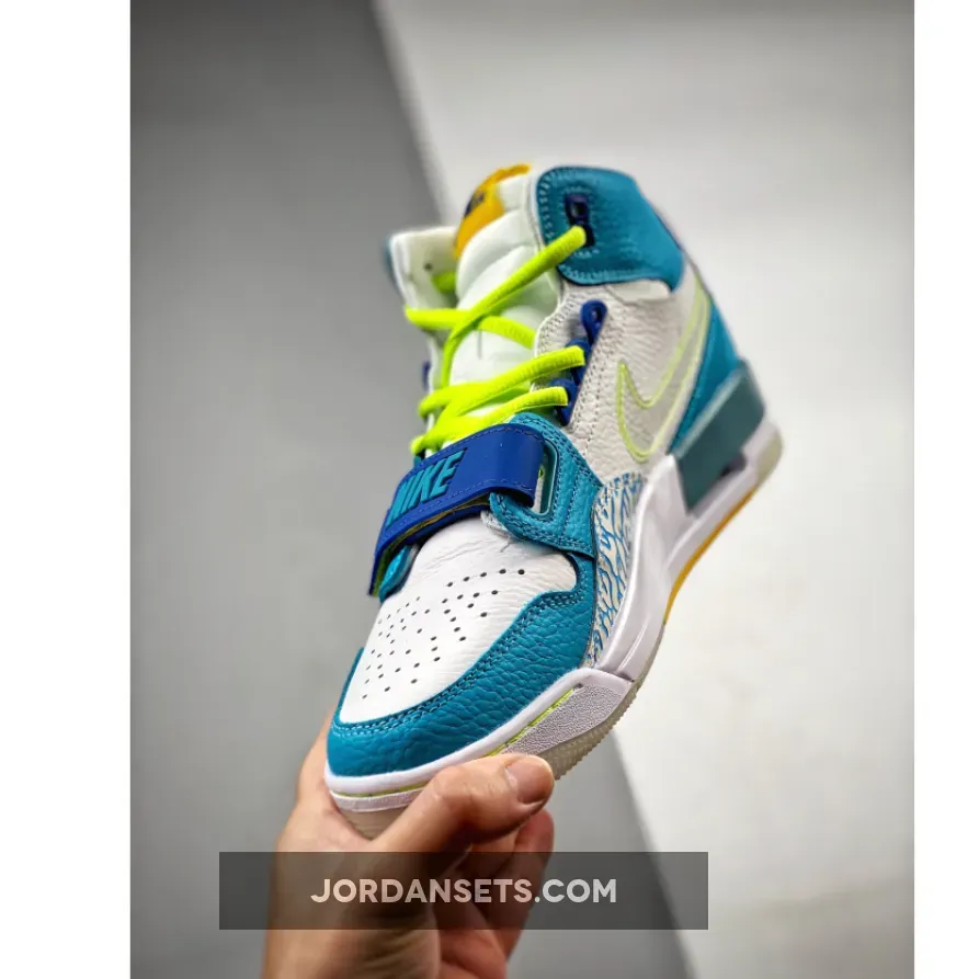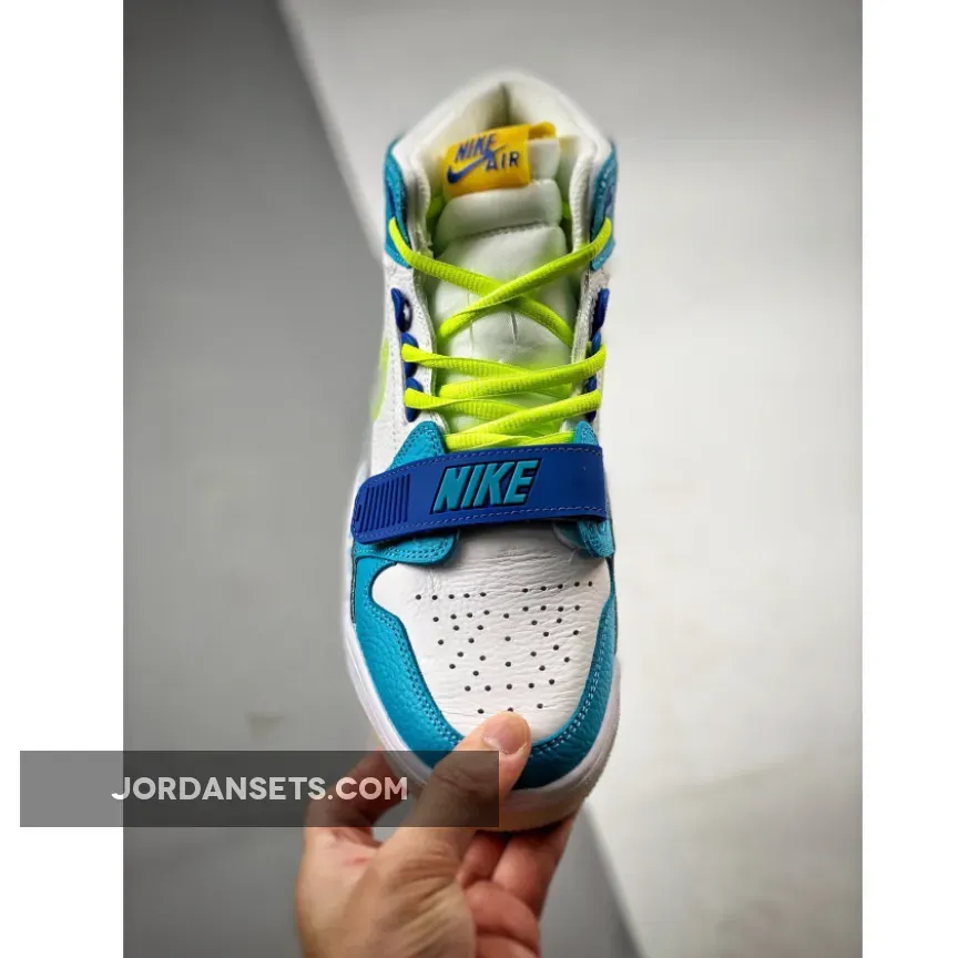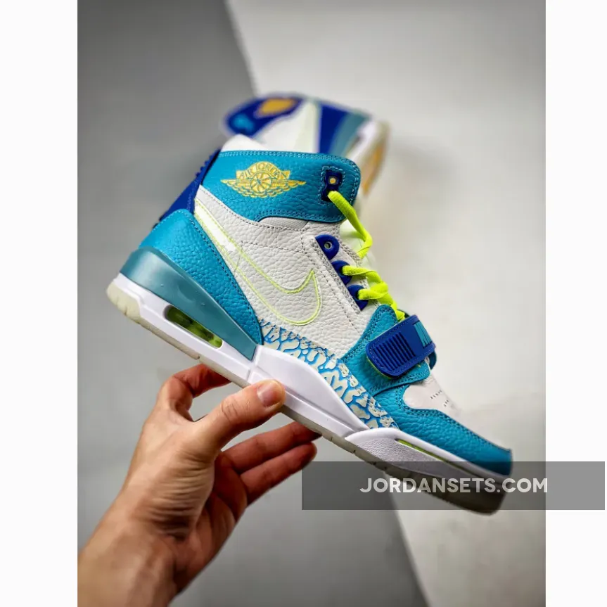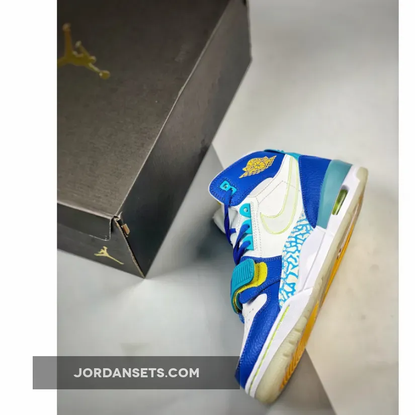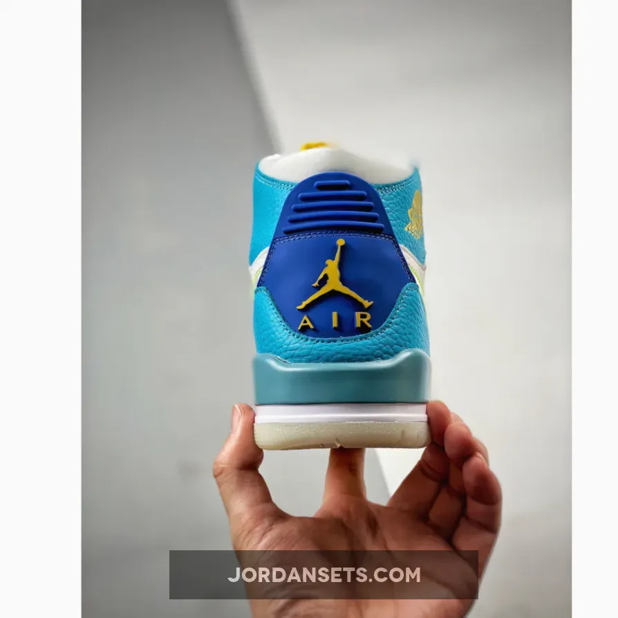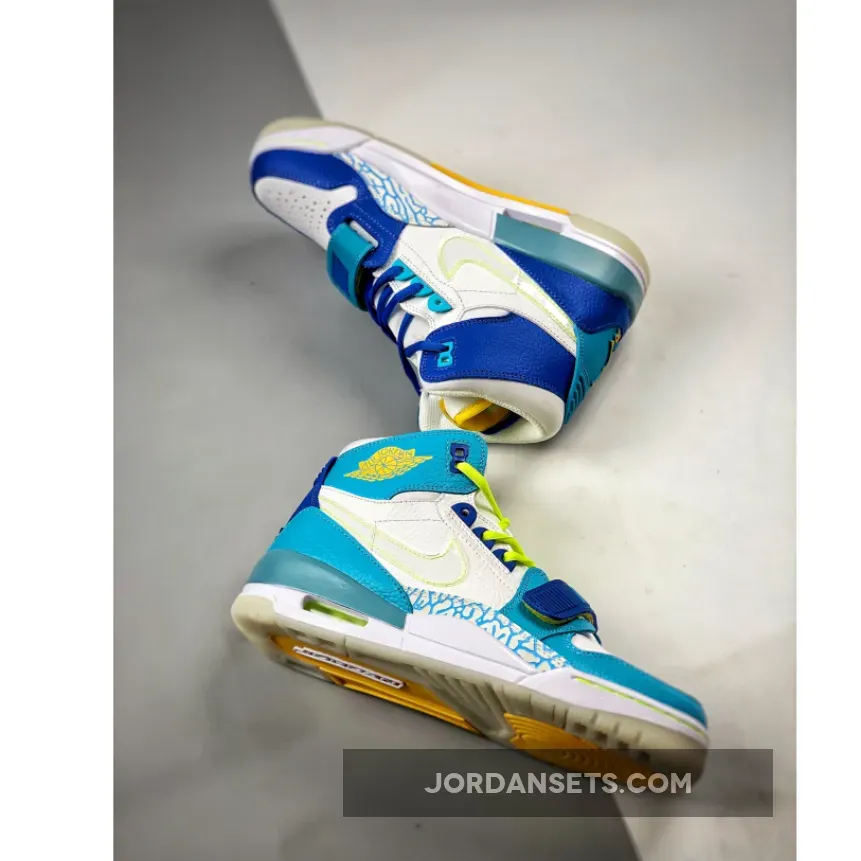 The Jordan Legacy 312 GS ‘Fly’ draws inspiration from the Air Jordan 1, Air Jordan 3 and Nike Alpha Force. Don C. designed the model, which released in March 2019 with a colorway of Blue Lagoon, Clear, Team Royal, Off White, Blue Gaze and Amarillo. The sneaker comes with an abundance of Jordan branding, a leather and synthetic upper, and a forefoot strap.