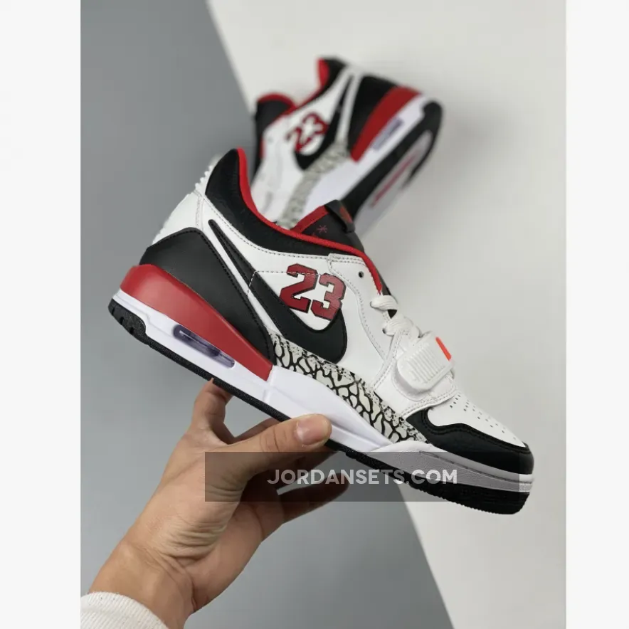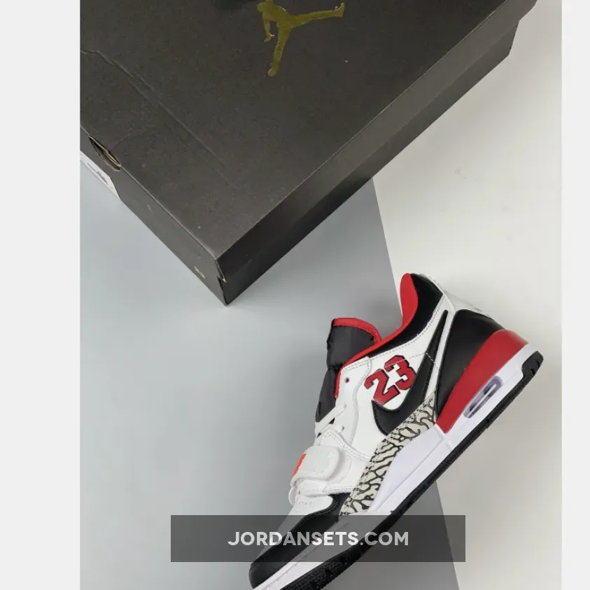 Nike’s Jordan Legacy 312 Low 23 White Black Red sneakers live up to their titular mission as legacy kicks. This pair is updated in Chicago Bulls colours, with white serving as the base for the leather upper. Contrasting accents come in via the black mudguard, Swoosh, collar and lateral overlay, as well as the red tongue trim, lining and lateral midsole. The style’s numericals hit just above the Swoosh, while an elephant-printed insert lands underneath it. On the comfort front, you get generously a padded collar as well as supreme cushioning via the exposed Air unit.
