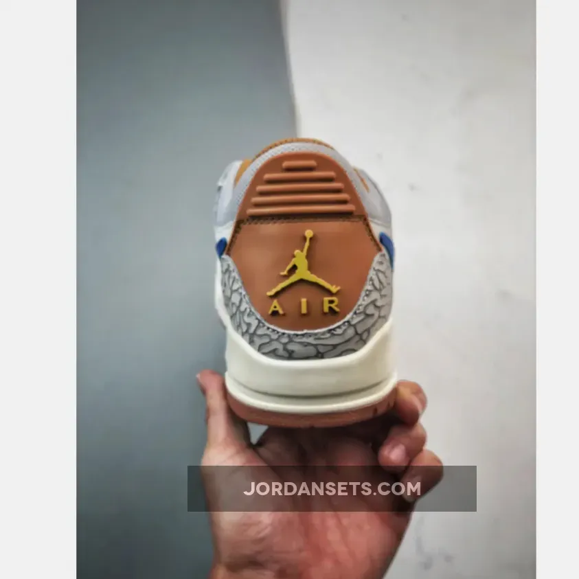 the pair Imbued with a contemporary collection of colors, the chosen palette centers on a faint “Sail” hue throughout a dominant majority of the upper real estate. This clean, understated base is perfectly complemented by the iconic grey elephant print, a hallmark of the Jordan brand, which adorns the heel while being mirrored by a smooth leather finish at the toe.