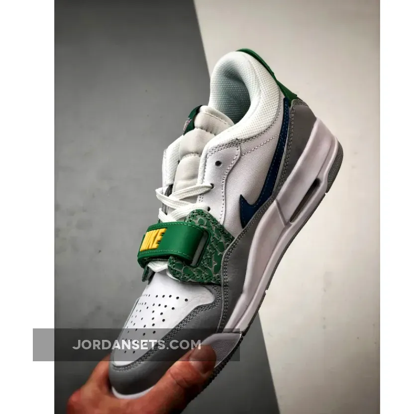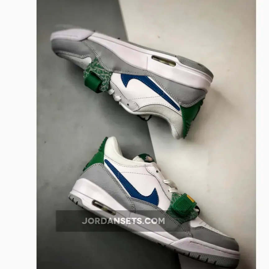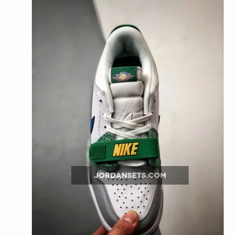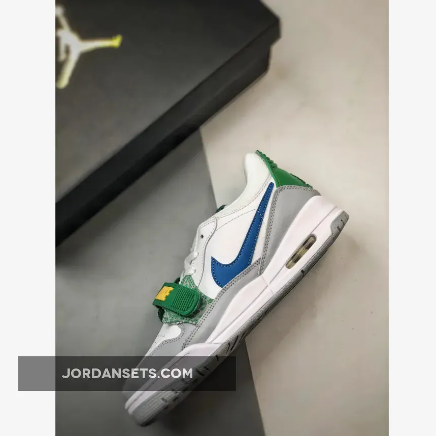 This design seamlessly merges iconic elements from the Air Jordan 3, 1, and Alpha Force. The shoe boasts a combination of leather, synthetic, and textile materials, with a midfoot strap for a snug and secure fit. Additionally, the heel features a visible Air-Sole unit, ensuring excellent responsiveness and cushioning.