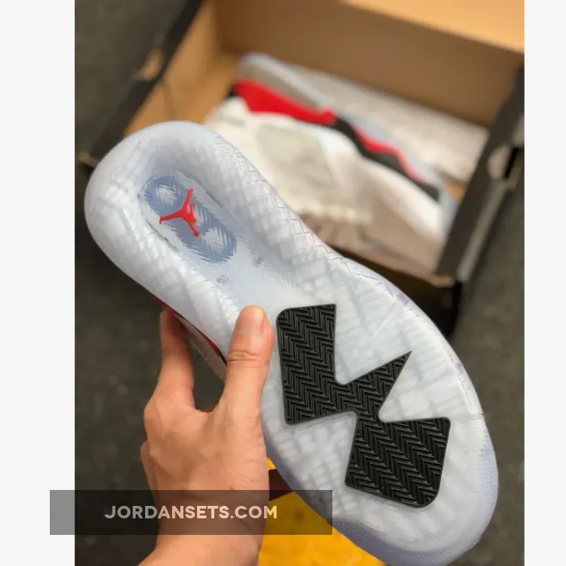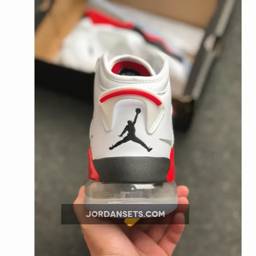 Paying homage to classic Air Jordan colorways, one of those will include an upcoming “Fire Red” iteration. This release features a White leather upper with a Silver Swoosh underneath the mesh netting on the sides. Black detailing, Fire Red accents atop an Air Max 270 heel unit and translucent outsole completes the design.