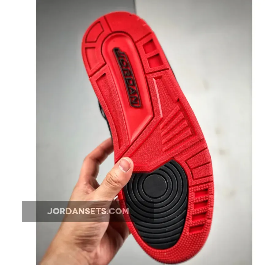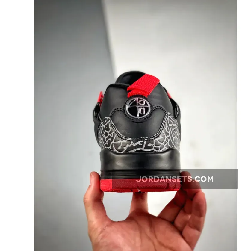 True to its name, the Jordan Spizike Low “Bred” fully embraces the classic black and red color scheme. Crafted with an all-Black leather upper, the shoe exudes a polished vibe. The blacked-out midsole and hardware further reinforce the shoe’s monochromatic core, creating a bold brutalist look.