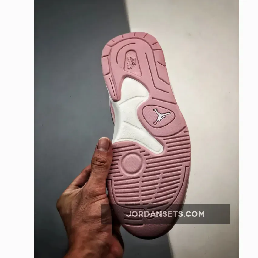 The Swoosh logo of Nike is carefully tucked and it is hued in a dusty rose shade of suede material. The tongue, heels, and lower soles are also finely lined with this rosy tint. The signature feature from Air Jordan 4, the netted paneling, is also there in summit white. All these engraves emphasize those blending features.