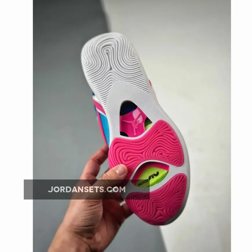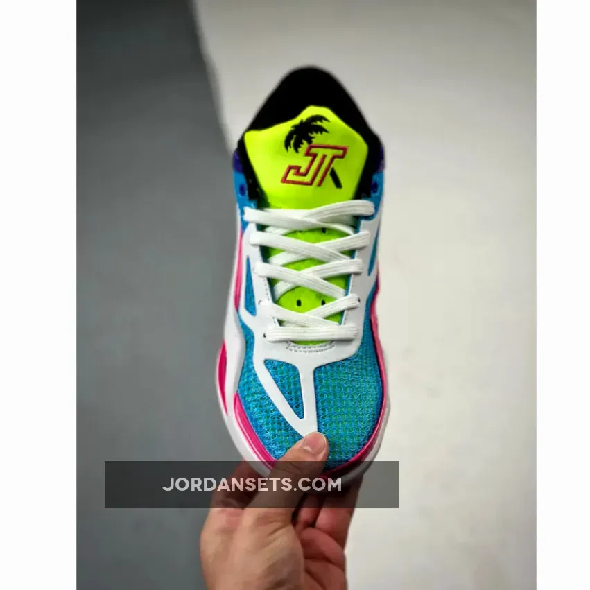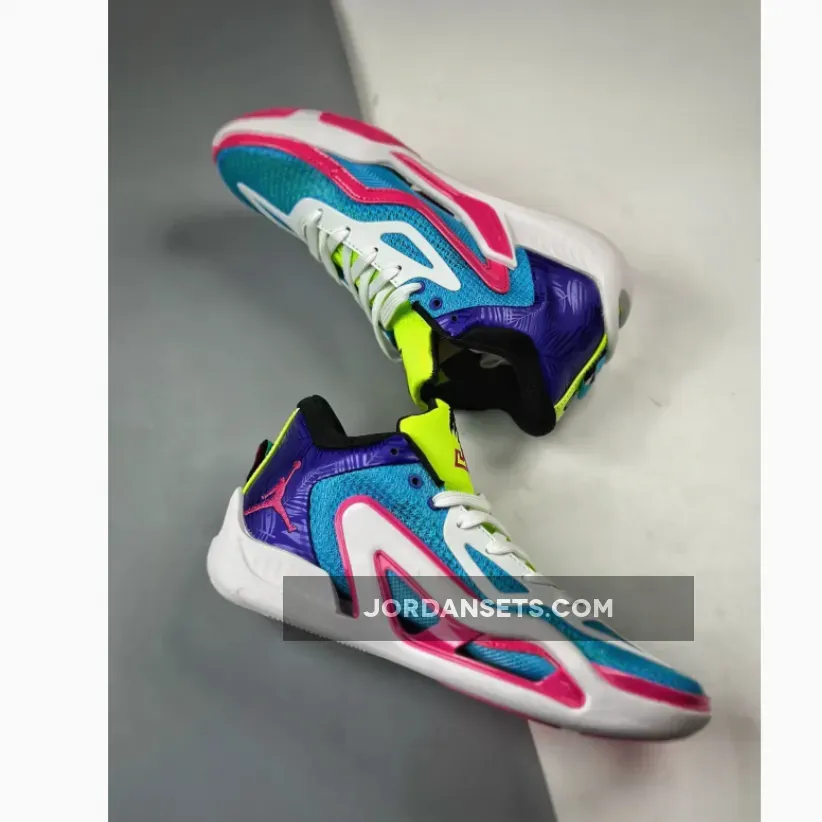 The Jordan Tatum 1 Wave Runner Men's shoes with SKU FV0169-400 are a stylish and comfortable pair of sneakers that are perfect for any casual occasion. The shoes come in a vibrant Lagoon Pulse/Pink Blast/Psychic Purple/White/Lime Glow/Black colorway that is sure to turn heads. The upper is made of breathable mesh material that keeps your feet cool and dry, while the rubber outsole provides excellent traction and durability. The shoes are designed to be lightweight and flexible, making them ideal for running, jogging, or walking. The Jordan Tatum 1 Wave Runner Men's shoes are a must-have for any sneaker enthusiast who wants to look good and feel great.
