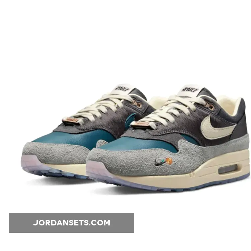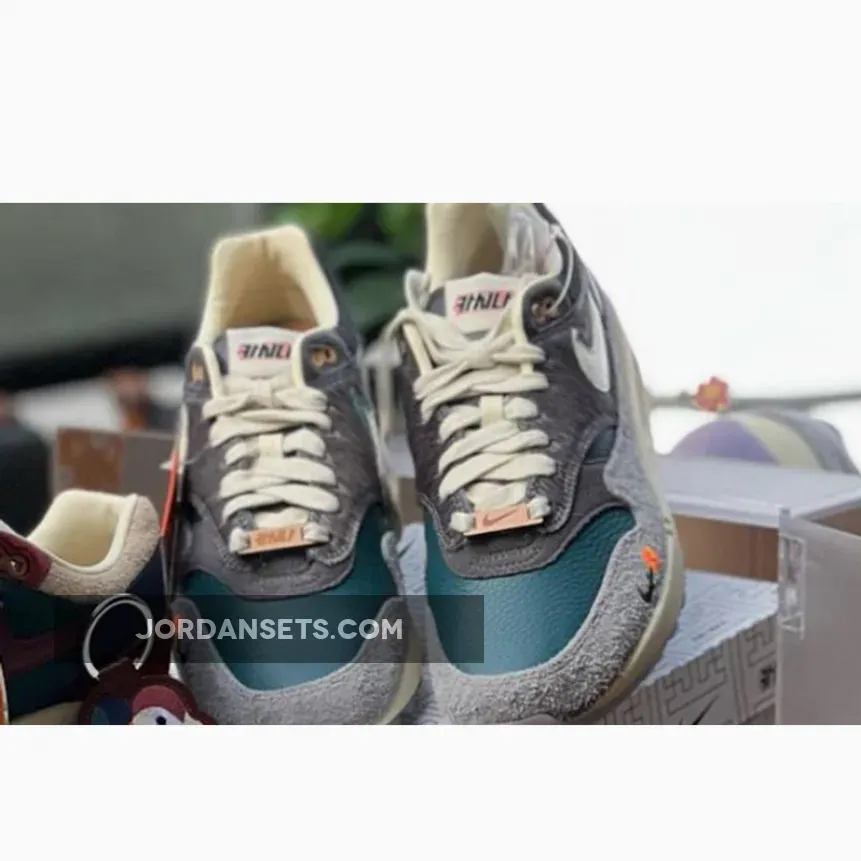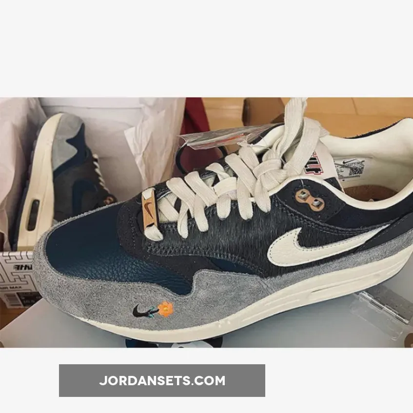 Solid colorway, intricate details ? Quality leather, comfy fit ? Kasina x Nike Air Max 1 Better Together Blue Grey is a must-have for collectors! ? #SneakerGoals #NikeCollaborations #MustHave