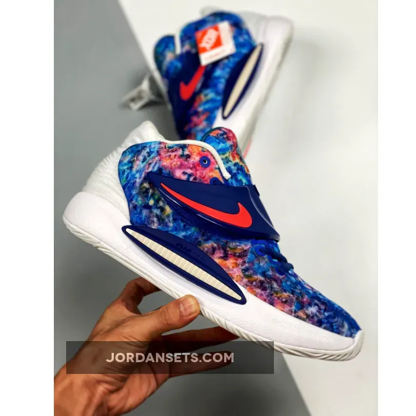 Color-popping greatness! Nike KD 14’s psychedelic design & vibrant hues make it a must-have. The cross strap & responsive cushioning elevate its performance. Perfect for stunting on the court or turning heads. #NikeKD14 #SneakerGoals