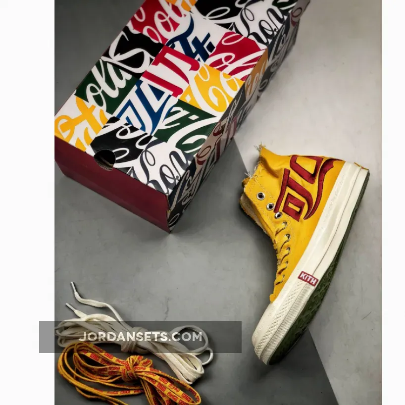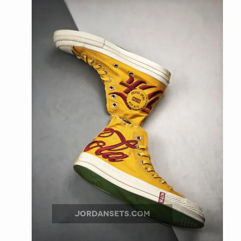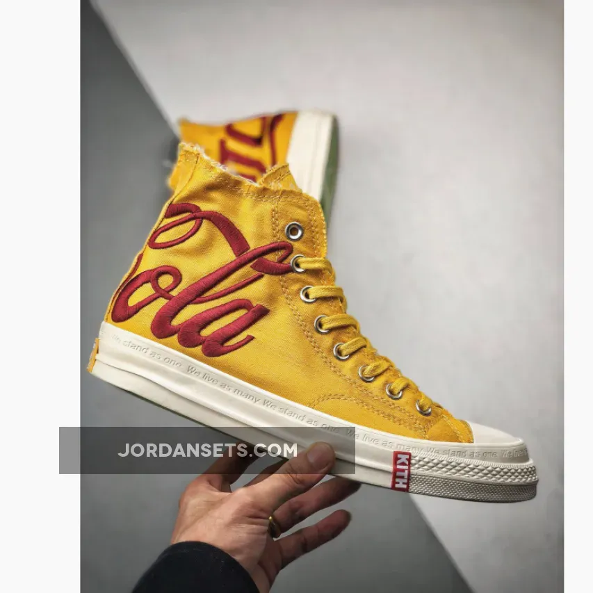 Today brings about a first look at their KITH x Coca-Cola x Converse Chuck Taylor All Star ’70s. The shoe denotes a slightly off-white canvas upper with trendy fraying around the tongue and ankle collar. Appropriate red accents highlight KITH and Coca-Cola branding while a green outsole adds a unique contrast to the largely two-tone base.