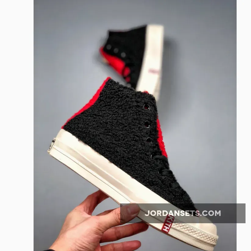 Converse, and the iconic Disney imprint. A celebration of Mickey himself — the ever-recognized poster boy of the longstanding animation and theme park institution — the pair of Chuck 70s dresses up simply to more adequately display the side profile’s standout prints: a compendium of the big eared character in the drobe of some of his most signature appearances. Either default in his bright red drawls or magic-enhanced with Merlin-approved robe and cap, the leather-constructed pair does it all complete with the “KITH” box logo right along the walls of the sole. Another “timeline” style in cream canvas appears with the critter’s lovable face along the lace collar, while a black/red plush version honors Mickey’s long-standing reign as one of the best stuffed animal toys in history.