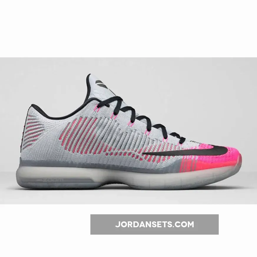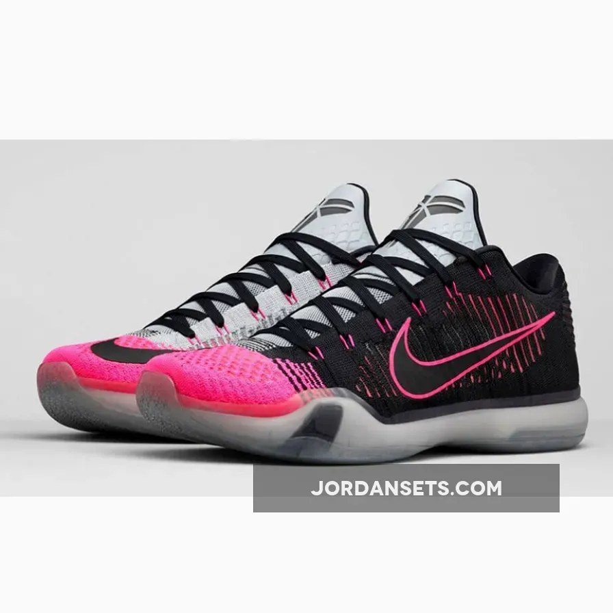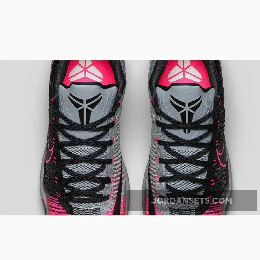 Appearing in a low-top design, the Nike Kobe 10 Elite is constructed with a seamless Flyknit upper, featuring the “Mambacurial” color theme inspired by Nike’s iconic soccer cleat. Contrasting black and pink accents line the exterior angles, while the tongue and medial panel appear in a grey hue.