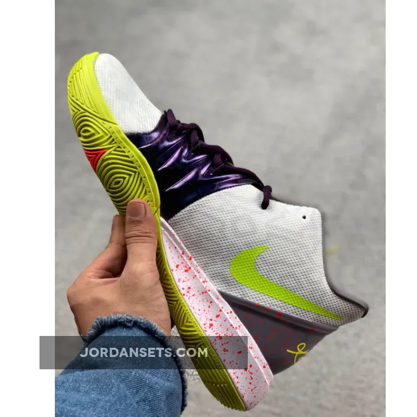 This Nike Kyrie 5 comes dressed in a White and Cyber color combination. Highlighted with White across the upper while shades of Purple and Neon Green are spread throughout which is a tribute to the ‘Chaos’ Zoom Kobe 5 inspired by the Joker which originally released in 2009. Nike Kyrie 5 Mamba Mentality Color: White/Cyber Release Date: April 13, 2019 Style Number: AO2918-102 Price: $130