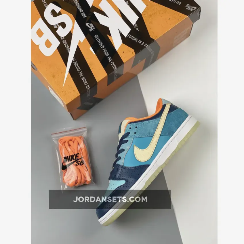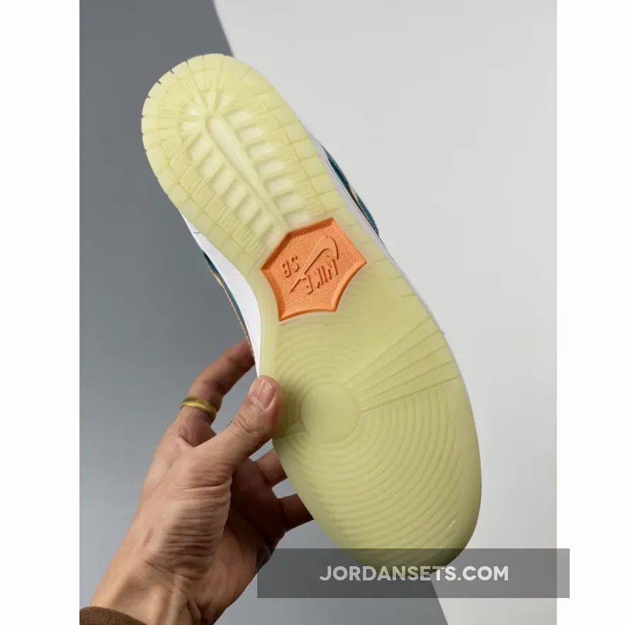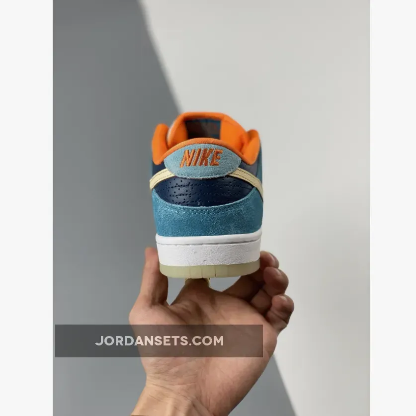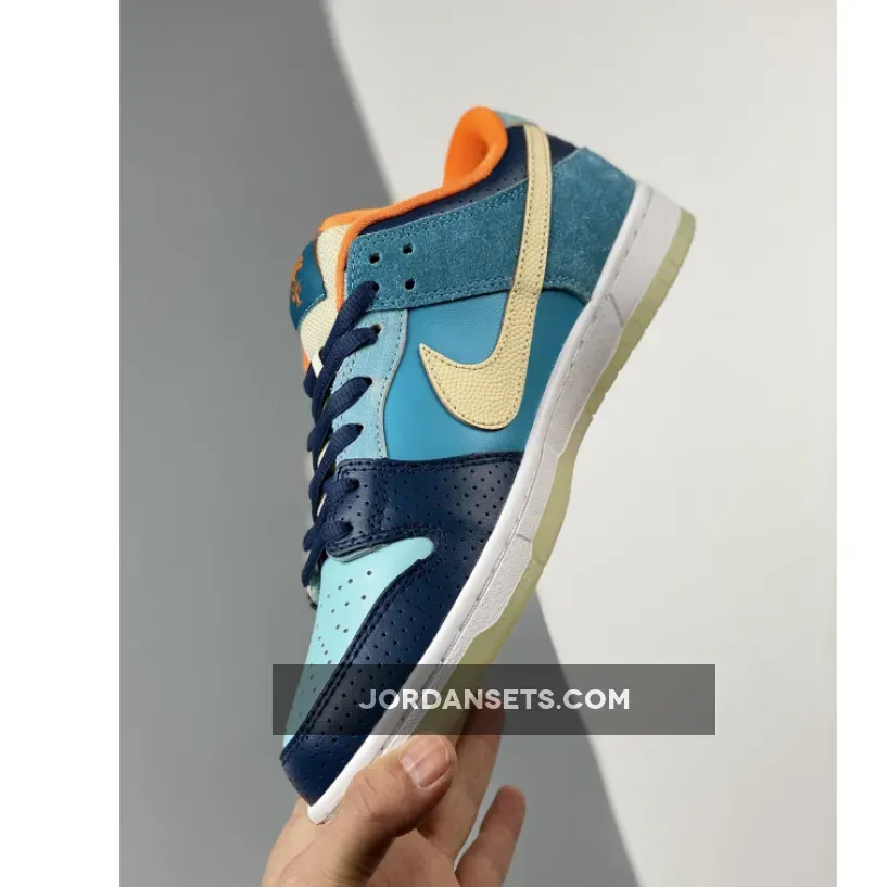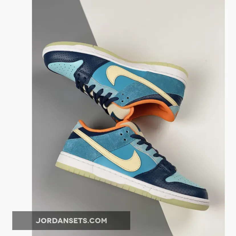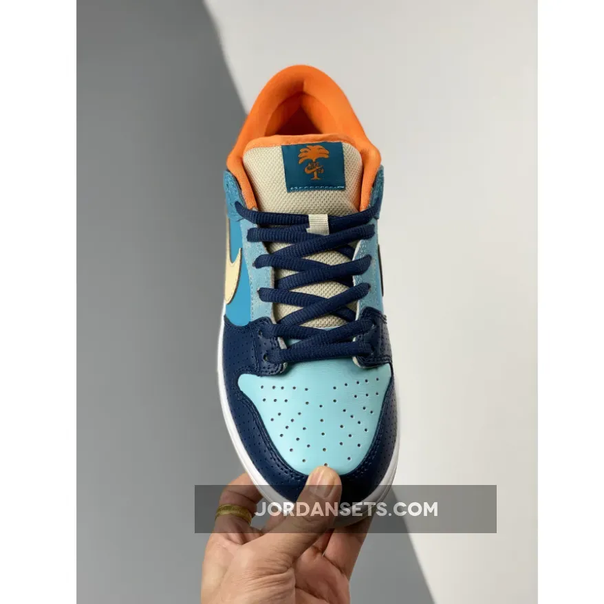 Releasing in 2013, the Dunk Low Premium SB QS ‘Mia Skate Shop 10th Year Anniversary’ celebrates the Miami, Florida, skate shop’s 10th year in business. The upper features several shades of blue across its suede and perforated leather build, with a unique water-like graphic panel on the ankle. The beach theme extends to the tan pebbled Swoosh, while a custom orange palm tree logo emerges on the padded mesh tongue. Another palm tree appears on the custom footbed, and the shoe rests on an icy translucent outsole. The shoe dropped at an MIA Skate Shop x Nike SB Pop-Up in Miami on Go Skateboarding Day.