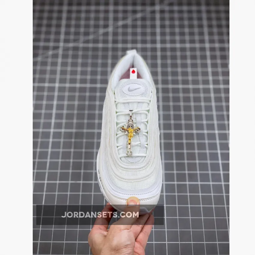 The pair have been filled with 60cc of water that was originally sourced from the River Jordan and then blessed, meaning wearers are able to, theoretically, walk on Holy Water. MSCHF continues its biblical references with a nod to The Vatican, who is known for their intricate jewels and traditional red shoes. As a result, the customized pair features red insoles that have been scented with Frankenscence in reference to this, and include a steel crucifix on the shoelaces, Matthew 14:25 inscription on the toe box, and an all-round muted water-themed colorway with red accents. Rounding off this Godly pair is a shoebox that features a seal that is modified from the official Papal Seal, and an angel on the box that is excerpted from Albrecht Durer’s 1514 engraving Melencolia I.