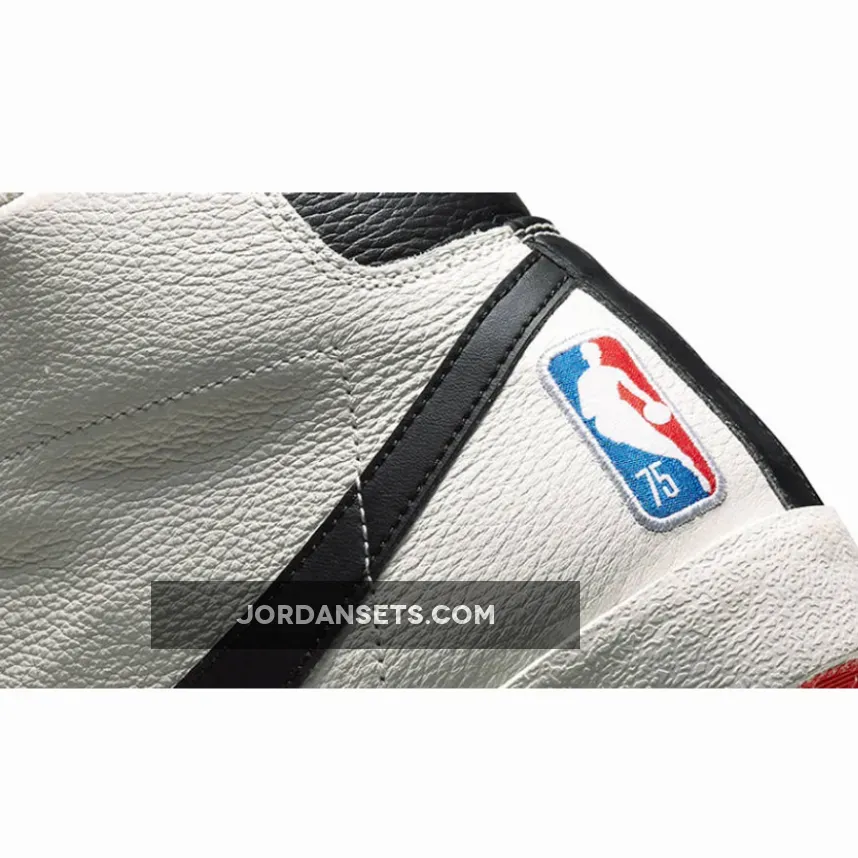 Additionally, tones of red, blue, and yellow pop on the main Swoosh and tongue labels. Special callouts for the anniversary can be found on the tongue labels, the diamond-etched lace deubrés, and the NBA logo on the heels.