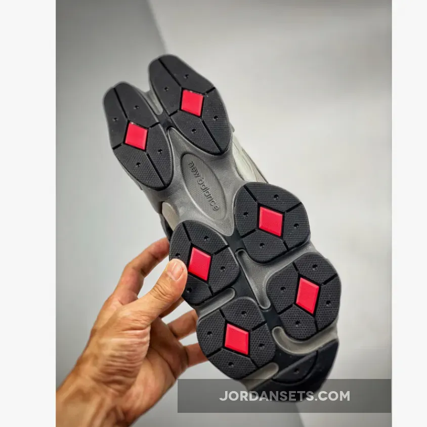 the neo-futuristic design appeared in an autumn-friendly “Black” and “Castlerock” color combination. The majority of the shoe’s upper, which draws inspiration from performance-running models of the past, indulges in dark shades of the aforementioned tones, allowing for the New Balance 860v2-informed cushioning solution underfoot to revel in a predominantly greyscale finish. New Balance-branding on the tops of the tongue deviate from their surroundings in vibrant red flair, a design choice that also lands on the diamond-shaped traction detail underfoot. As the 90/60’s co-designer has gone on record having said, the sneaker’s look is “dramatic,” refreshing given the century-old company’s once-widespread reputation as boring.