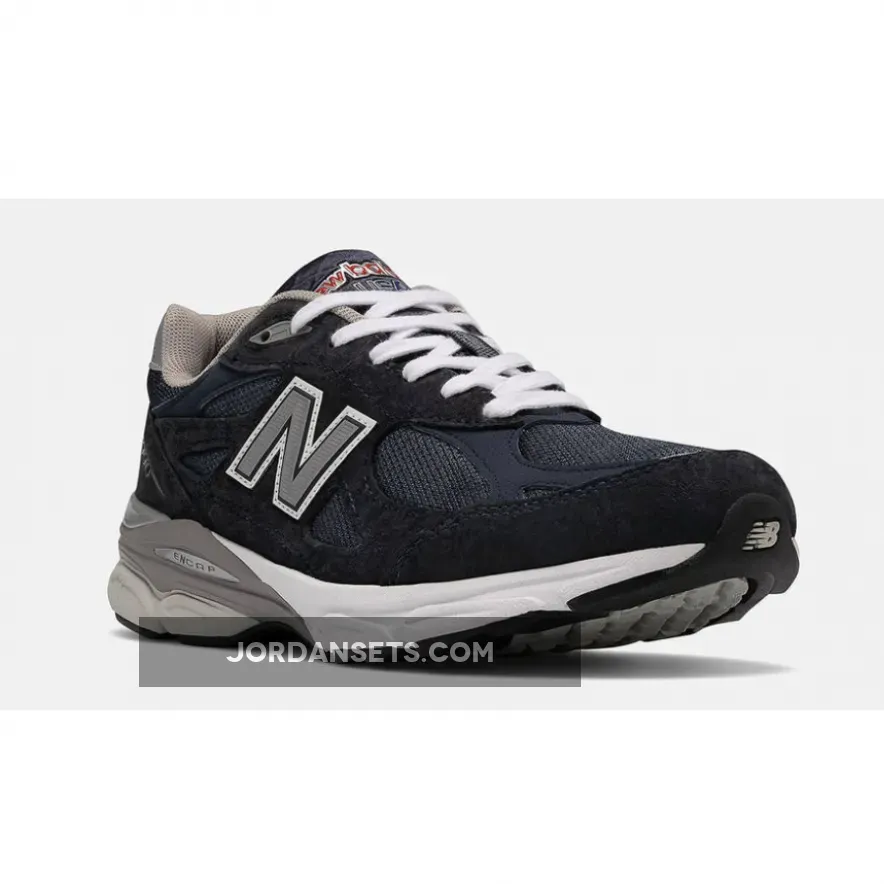 Considered to be both a lifestyle and a running shoe, the New Balance 990v3 Navy Black Denim is an all-around dependable pair to have in your arsenal. It boasts a durable, premium built and versatile colourway that will seamlessly match most casual and street style ensembles. This New Balance 990v3 starts with a deep navy mesh base embellished with black pigskin overlays.Furthering the understated palette is the monochromatic New Balance “N” branding featuring grey, white and a black outline. More touches of smokey grey in the upper come at the heel tab and inner lining. Elsewhere, the plush tongue showcases a bold “New Balance USA” label in red and blue. Finishing the look is the two-toned black and grey midsole equipped with comfy ENCAP cushioning.