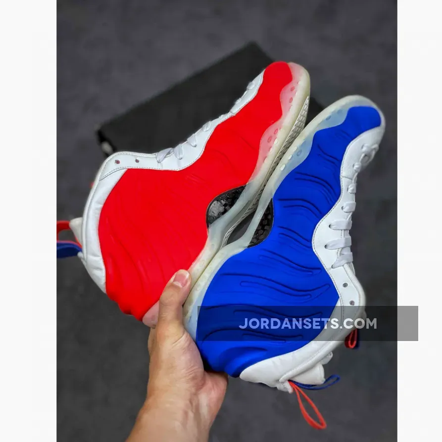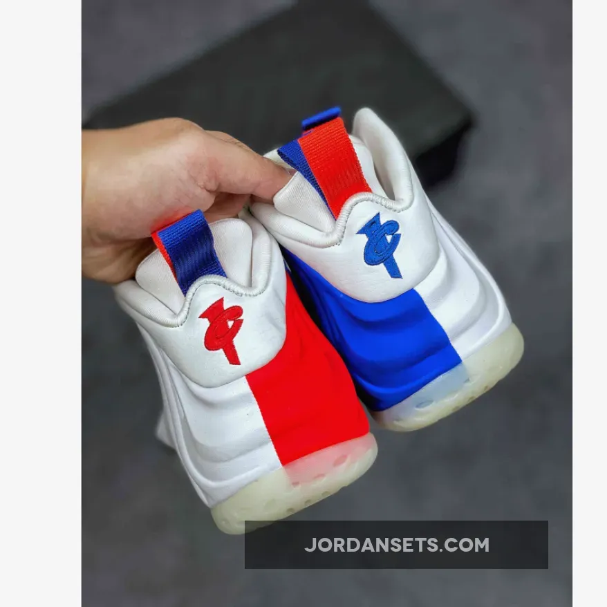 This USA-inspired Nike Air Foamposite One features a White Foam shell on one side, then when you flip them around you’ll notice one shoe comes dressed in Blue, and the other in Red. Other details includes Blue and Red mini Swoosh logos along with matching doubled pull tabs.