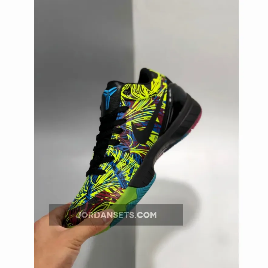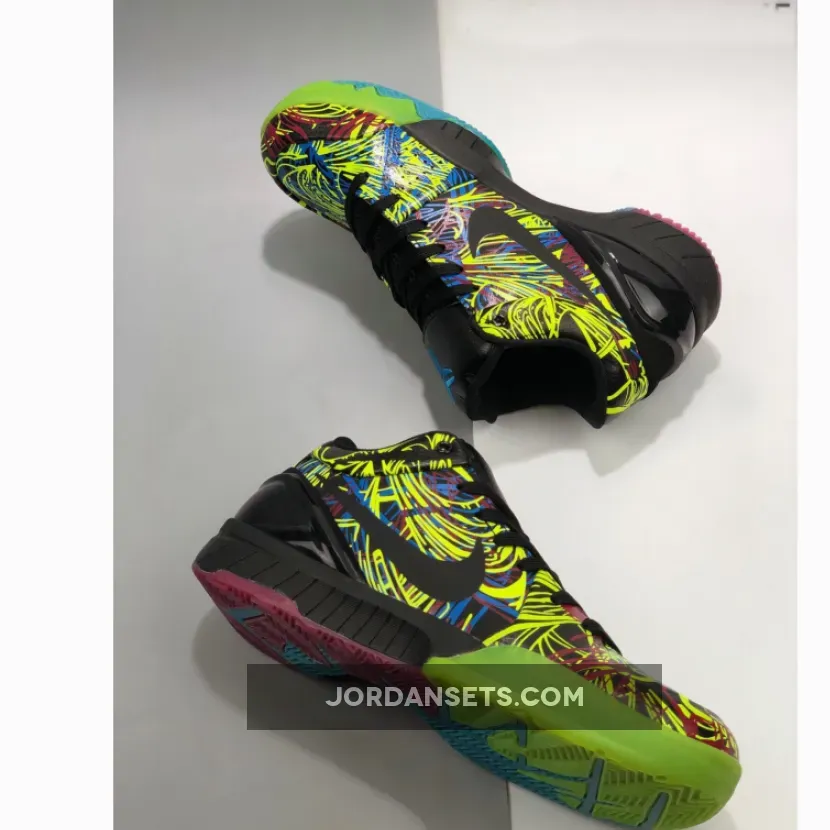 This offering of the Nike Kobe 4 Protro is inspired by Kobe Bryant’s book that features an array of colored streaks on the upper. Other details includes Black tumbled leather tongues, a matte Black heel cup atop a colorful rubber sole.