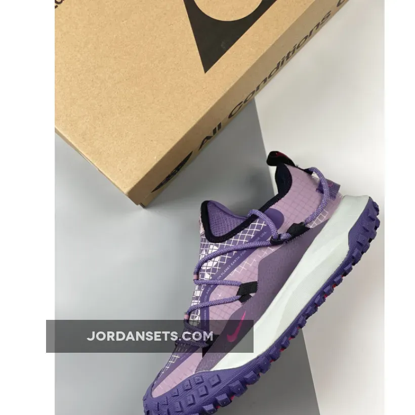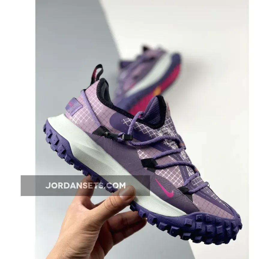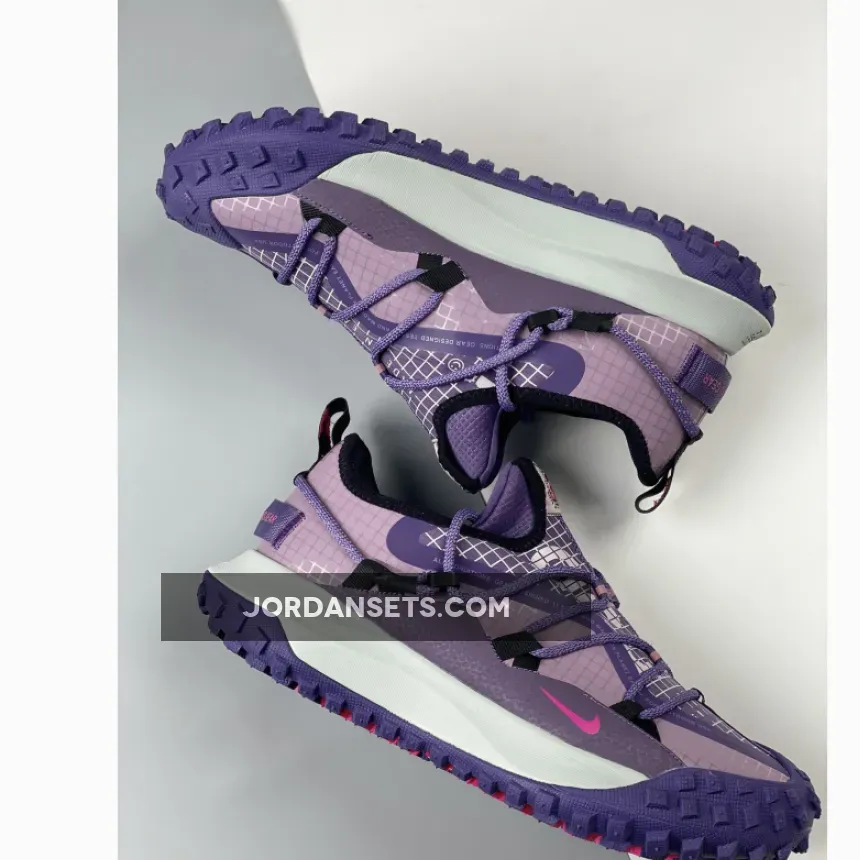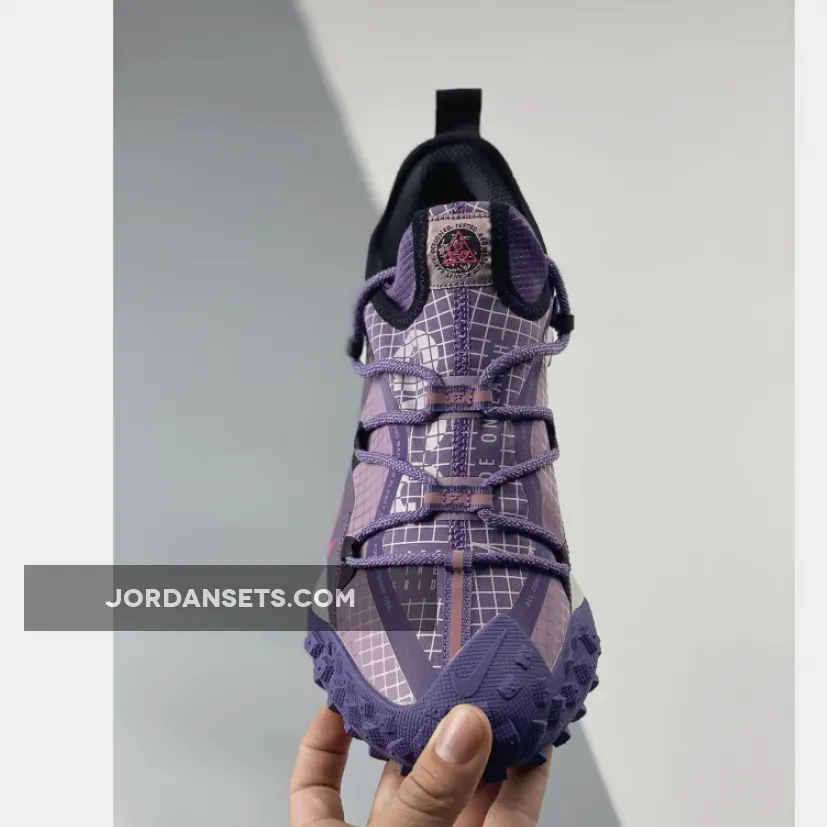 the silhouette appeared in a “Canyon Purple/Amethyst Rock” colorway that harkens back to the eye-catching aesthetics the Swoosh applied to their hiking models back in the 1980s. Weather-resistant nylon sets the stage for weatherized leather and canvas elements across the upper, which also boast a dark shade of purple. The waffle-patterned tread underfoot (which also covers the tip of the toe) rounds out the ensemble’s color palette and ruggedness