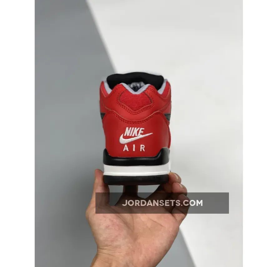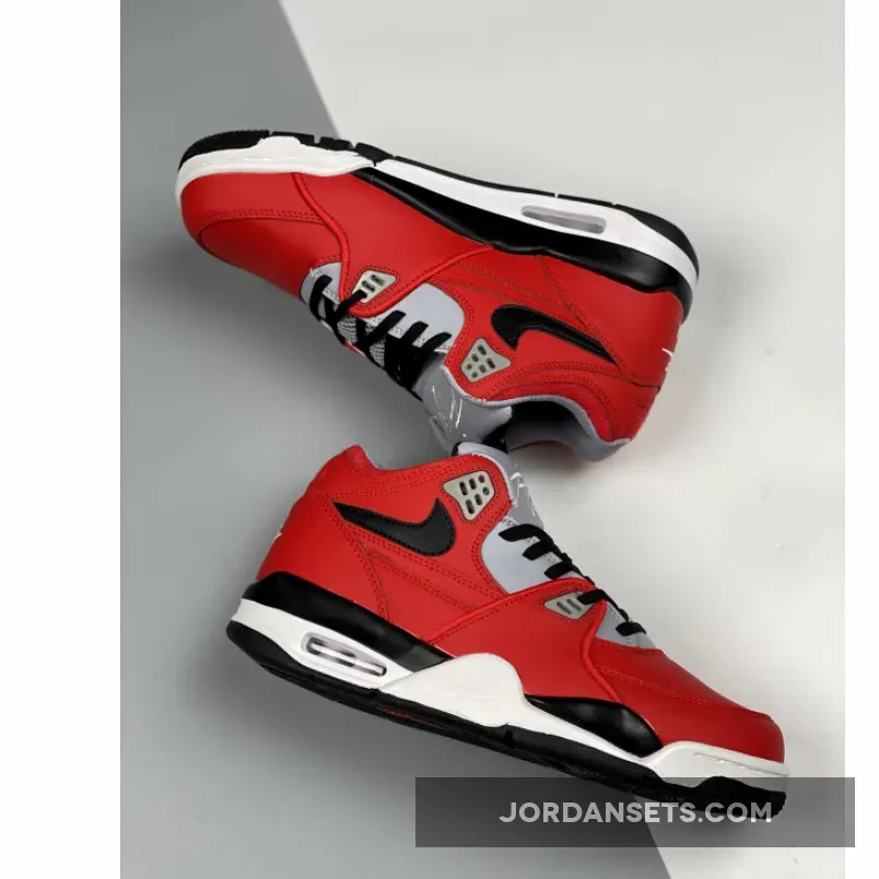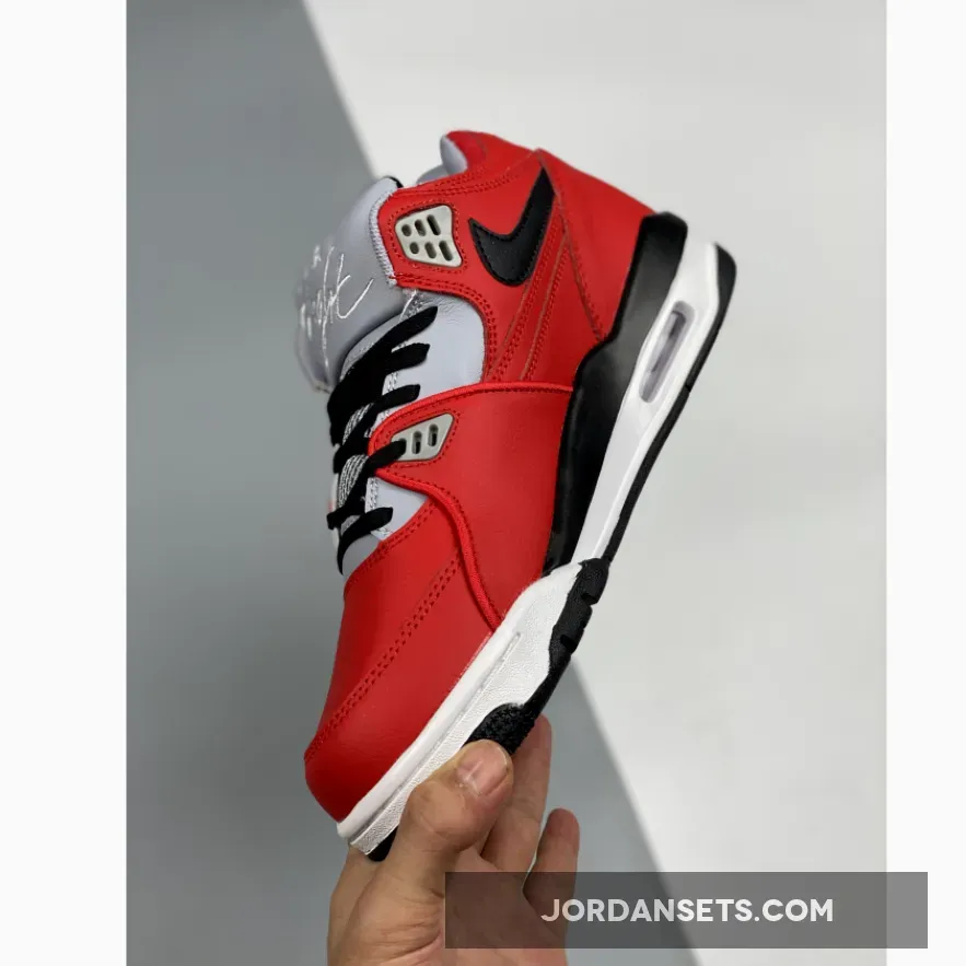 Starting at the top, white “AIR Flight” branding is embroidered over the shoe’s tongue over a smooth “Wolf Gray” leather base. Breathable mesh textiles appear along the rest of the tongue, contrasted by black laces that match the shade of the side Swoosh found near the rear quarter. “Nike Air” is etched onto the heel counter, while the rest of the body embraces a bold “University Red” palette in full-grain leather. All of these details sit atop a tri-toned midsole, paneled with black near the mudguards, white around the forefoot and, finally, gray at the heel, completed by a translucent Air Unit bubble that offers a small window to the shoe’s essential cushioning system.