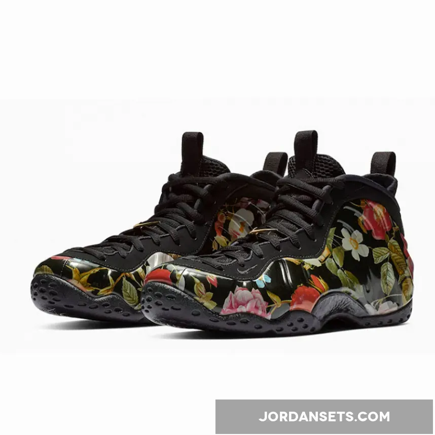 This Nike Air Foamposite One features an all-over floral pattern on its Foam shell with a Black upper and rubber sole. Completing the design is a Gold Swoosh lace dubrae adding for a nice luxurious touch.