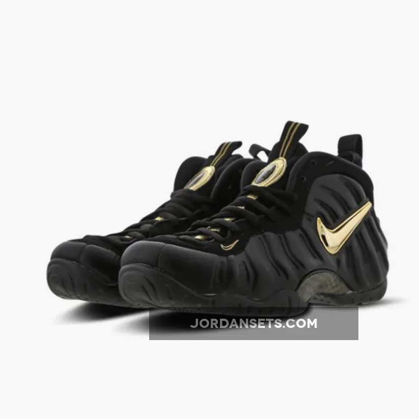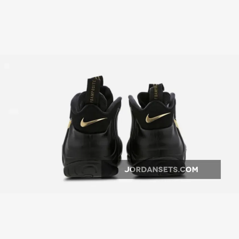 Rendered in a mostly black appearance, the Air Foamposite Pro ‘Black Metallic Gold’ is formed with the classic seamless molded shell, with metallic gold accents standing out on the Swoosh and tongue accent.