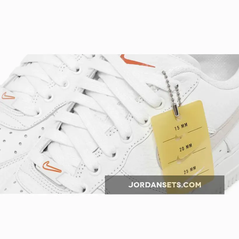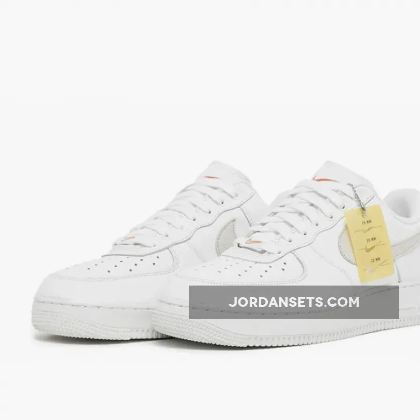 . The aforementioned logos on the upper’s sidewalls boast the titular “Light Bone” hue, while counterparts on the sockliner, tongue and lace dubraes favor “Solar Flare Orange” flair. Although the Air Force 1 Low can be kept as is from the factory, it can also be customized using the hangtag stencil that offers three different sized swoosh options.