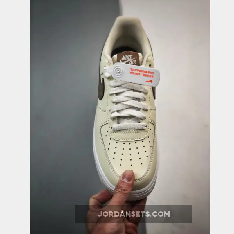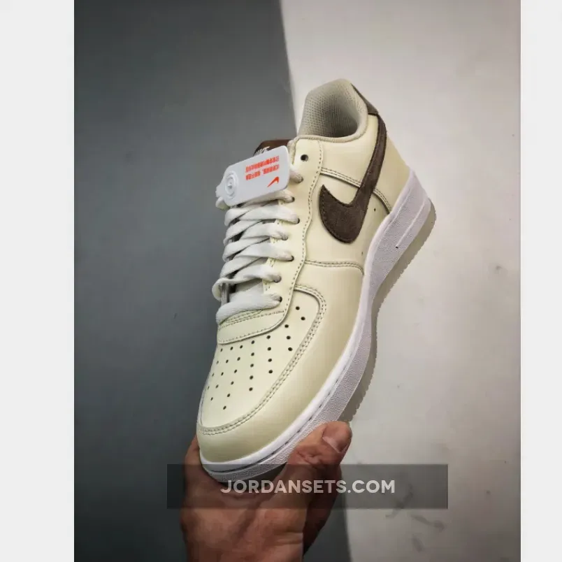 In shades of Sail, Khaki, Coconut Milk, and White, it flaunts a full leather build. Coconut Milk shades the leather, mesh tongues, lining, and laces. Khaki suede Swooshes and heel tabs add a touch of luxury, extending to the tongue labels and insoles. The design wraps up with a White AF1 midsole and semi-translucent outsole.