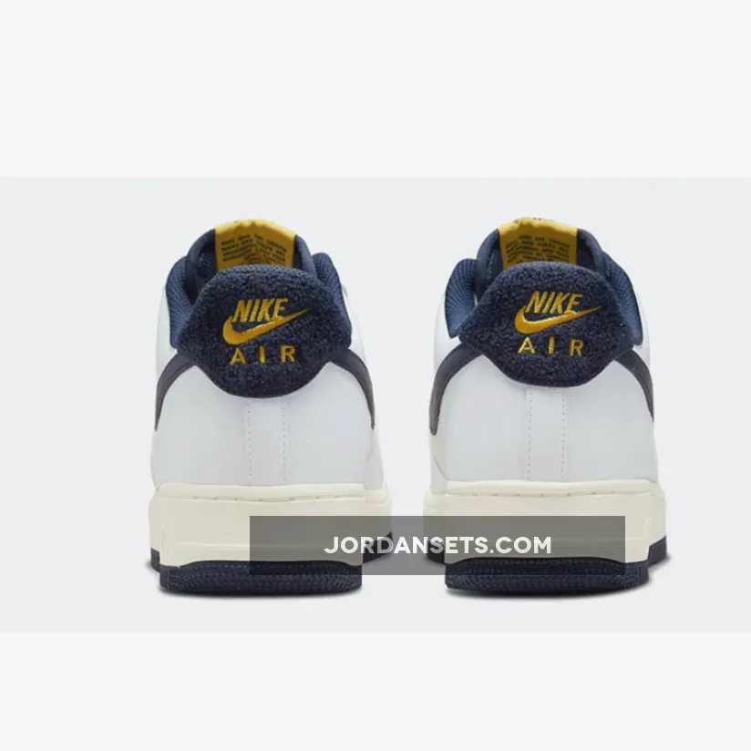 The offering comes layered in a white leather base with matching overlays resting on top. Additionally, the silhouette features a dark navy tongue with a gold tongue tag. Elsewhere, dark blue reappears on the Nike Checks and inner linings. Key details include navy blue chenille fabrics on the heel with yellow Nike branding.
