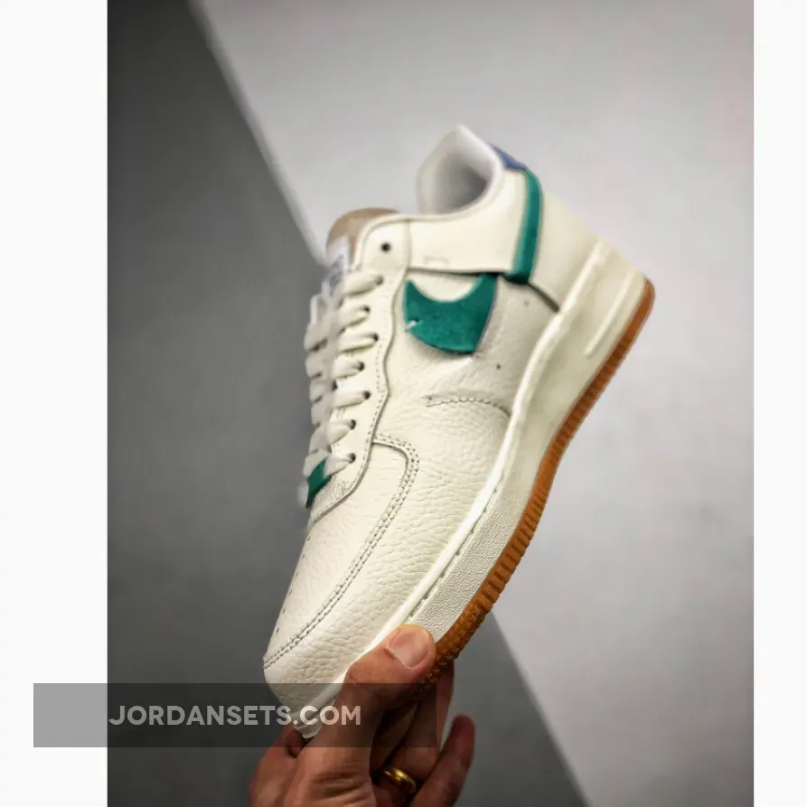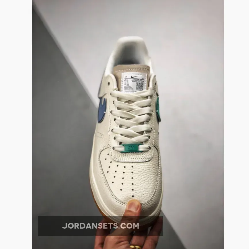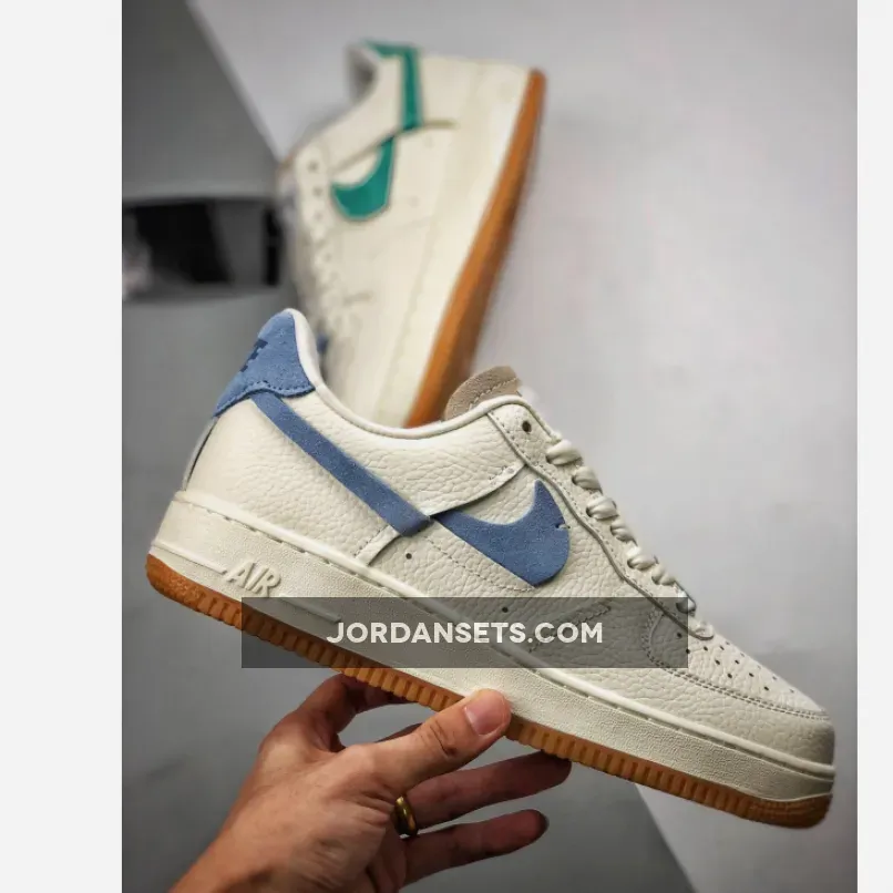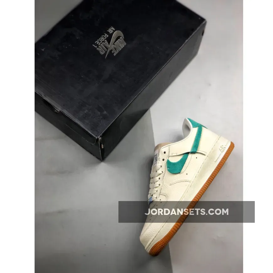 This Nike Air Force 1 Low comes dressed in a Sail, Green and Light Blue color combination. As you can see this pair features a reconstructed build while the tongues are flipped inside out and shows the production label and cracked Swoosh logos. Sail covers the entire upper while both Green and Blue lands on the Swoosh and heel. Completing the look is a Gum rubber outsole.