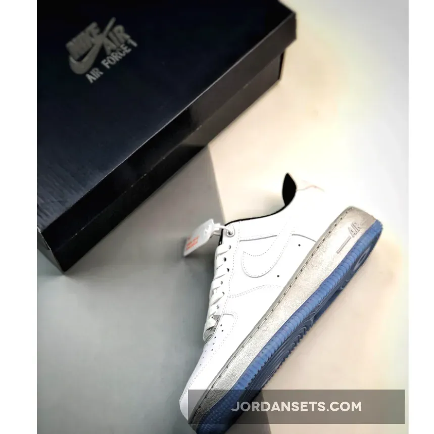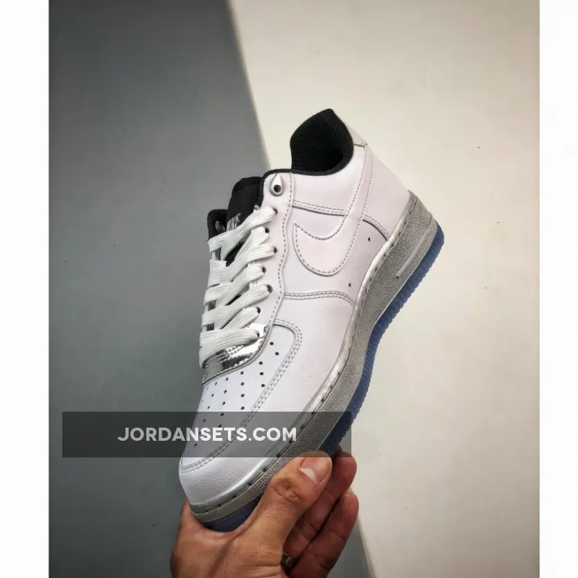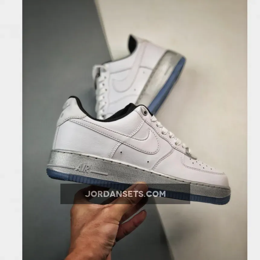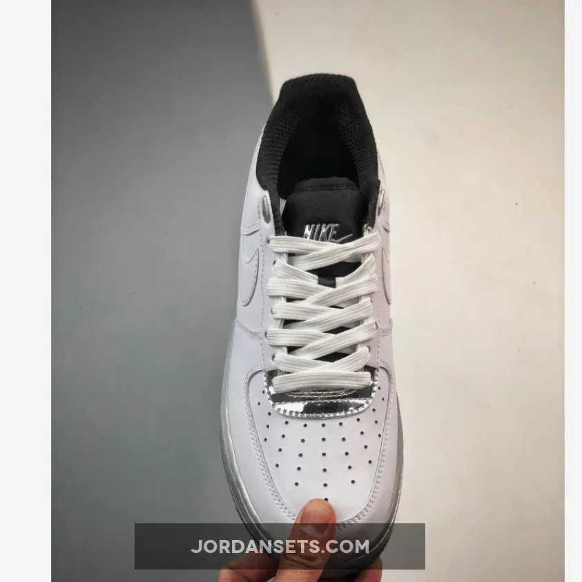 Dressed in a White, Metallic Silver and Black color scheme. This offering of the Nike Air Force 1 Low features an all-White leather upper with Black mesh tongues and lining. Other details includes Chrome vamp overlays, “Nike Air” branding on the tongues and heels. A Metallic Silver midsole atop an icy translucent outsole completes the design.