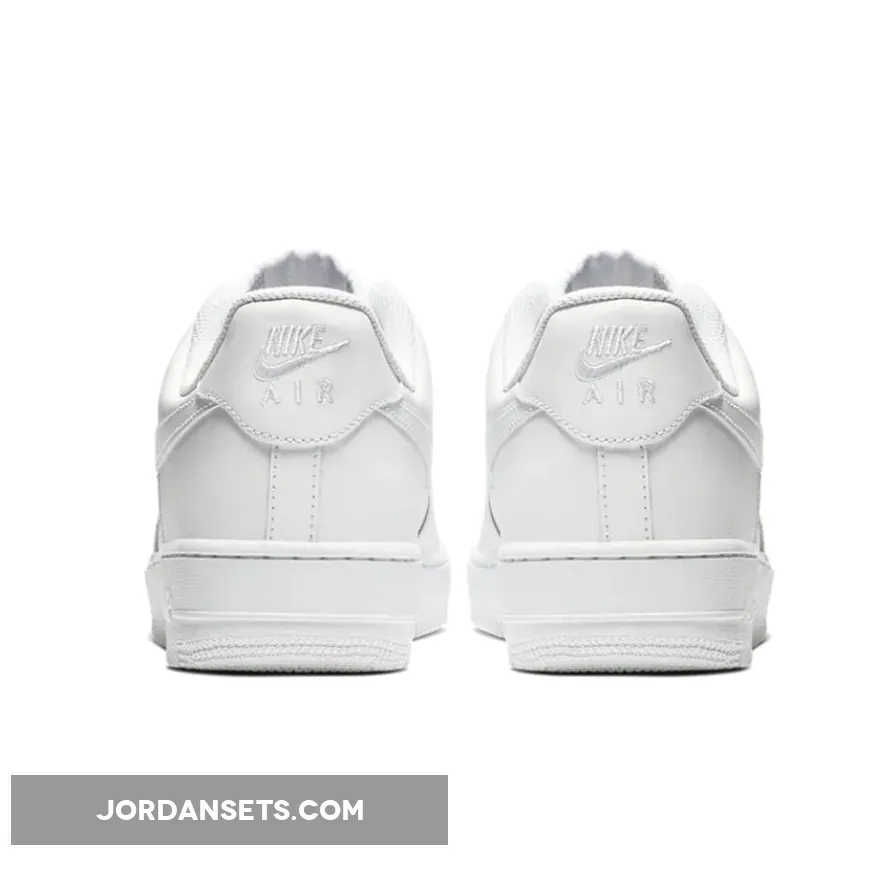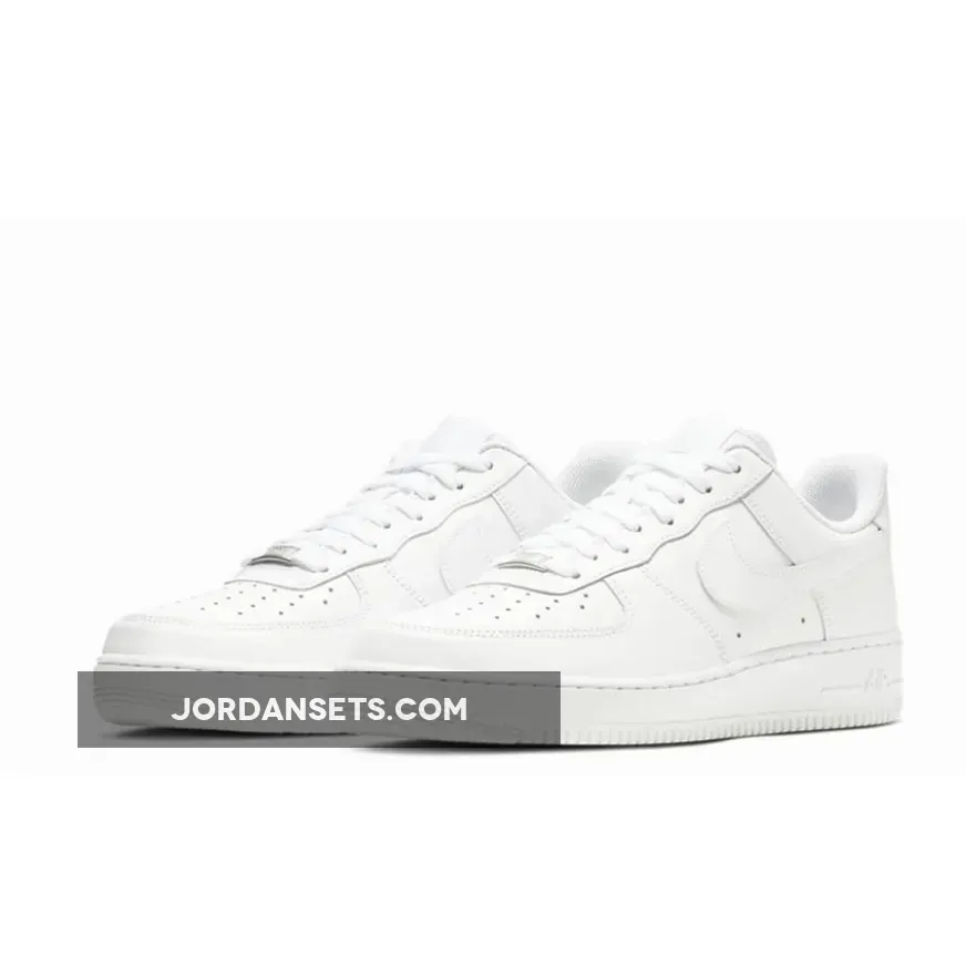 “The Nike Air Force 1 ‘07 ‘Triple White’ gives the classic silhouette a blank-slate makeover, one that accentuates the shoe’s classic lines. Built with white leather, the upper is appointed with heritage details, including a perforated toe box, variable width lacing, and metallic silver lace dubrae.Regardless of how many sneakers already have in your collection, nothing beats the classic Nike Air Force 1 07 Triple White colourway. A pair of basketball shoes introduced by Bruce Kilgore in the ’80s, the Air Force 1 instantly became an icon on the streets for its contemporary looks and unmatched comfort. If you’re looking for a pair of kicks effortless to style with any outfits, then these instantly deliver.This shoedrobe staple works atop a low-cut construction, accomodating super smooth white leather panels all the way around for a flawless premium touch. Up front, you’ll see a series of perforations gracing the toeboxes, these enable optimal airflow to circulate the user’s feet for a lightweight feel and sweat-free experience. Alongside all the high-profile collaborations the Nike AF1 has acted as a blank canvas for, notably Virgil Abloh’s Off-White x Nike series, and the Travis Scott Cactus Jack collection, the Air Force 1 Triple White is a must-have. If you still don’t have a pair of Nike Air Force 1 Low Triple White, then now is the perfect time to cop. How does the Air Force 1 fit? No problem, we have created a Nike Air Force 1 size guide so you know which size you need to grab.