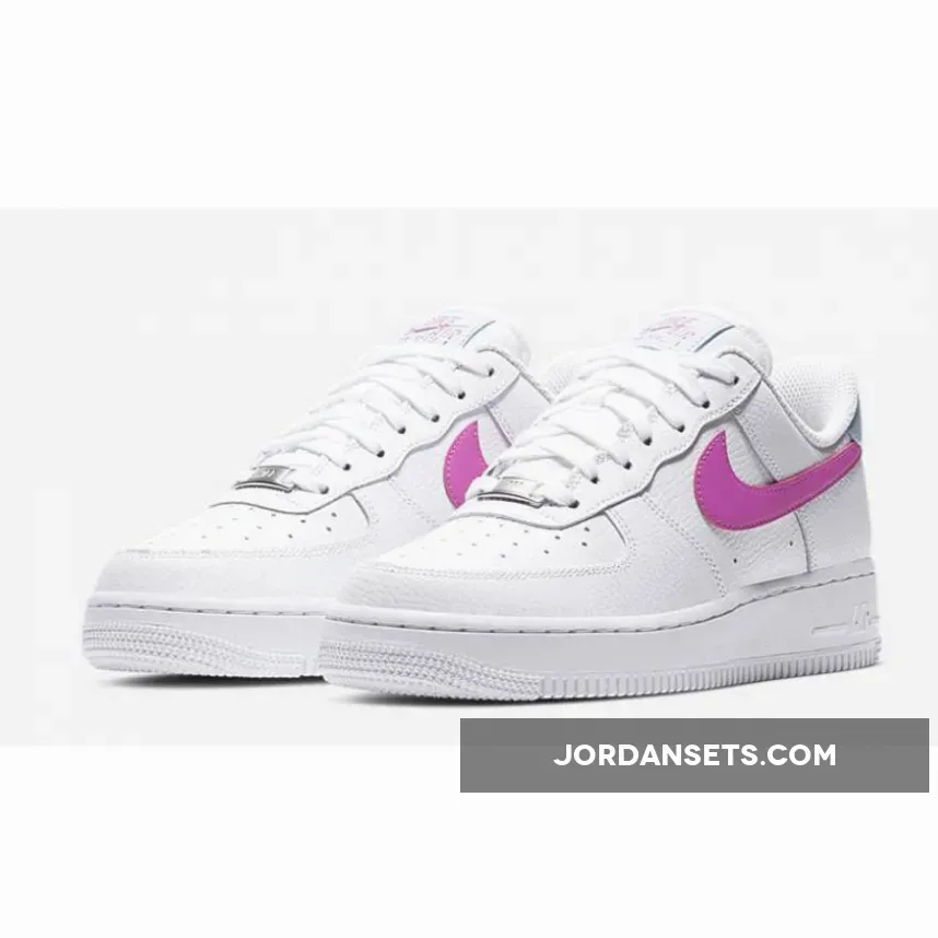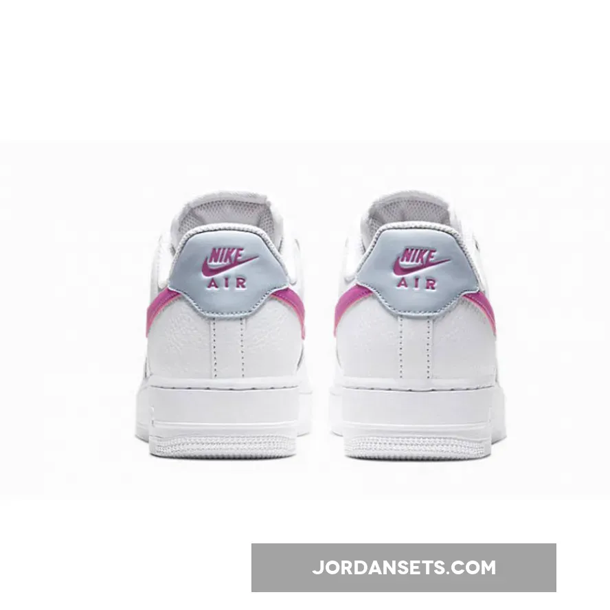 The women’s Nike Air Force 1 Low ‘Fire Pink’ emphasizes the sneaker’s various branding elements with vibrant pops of color. A dark pink hue is applied to the signature Swoosh and Nike Air lettering that adorns the heel tab and woven tongue tag, both of which are finished in a pastel shade of Hydrogen Blue. The upper, constructed from tumbled white leather, sits atop a matching white foam midsole. A metallic AF1 dubrae shines at the bottom of the lace bed.