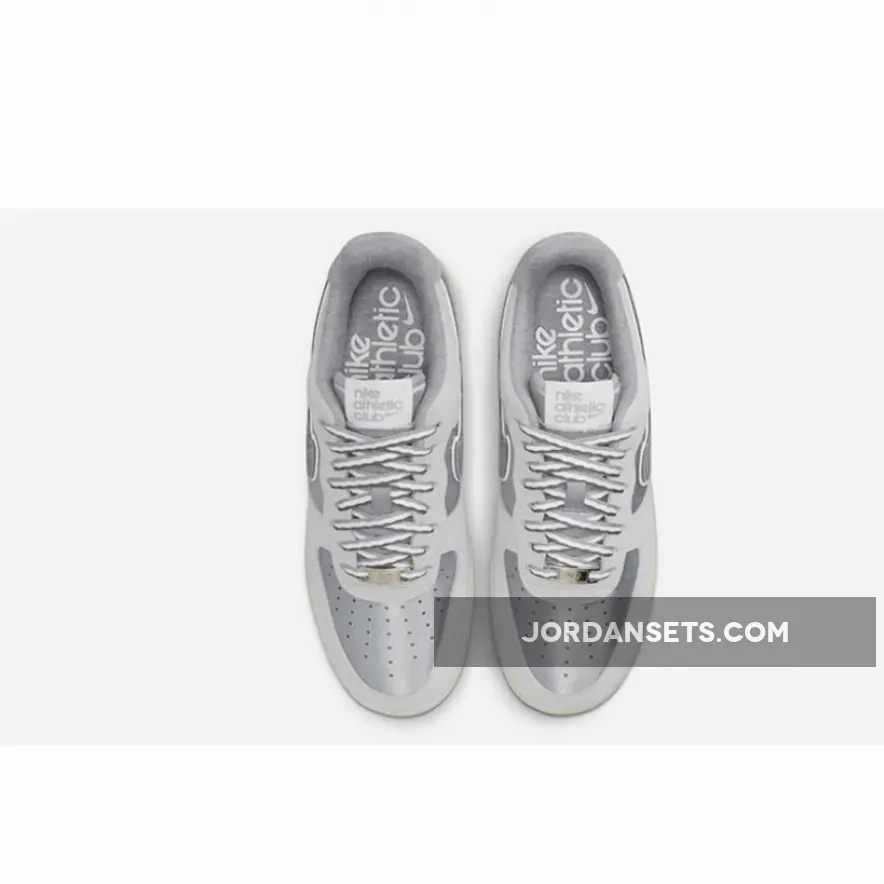 Nike has always been known for inventing fictional clubs and teams, like the Roswell Rayguns. The Bruce Kilgore-designed Nike Air Force 1 is no exception with its “Athletic Club” collection. Its latest edition is the Nike Air Force 1 Athletic Club Grey Silver. A perforated silver grey forms the base and peeks out of the toe box and the mid-panel. A very light grey suede covers the toe cap, mudguard, heel counter and the eye stays. Retro Nike Athletic Club branding appears in light grey on the tongue tab and white on the grey insole. A silver Air 1 deubré finishes the look. Use our Air Force 1 size guide to know how they fit too.