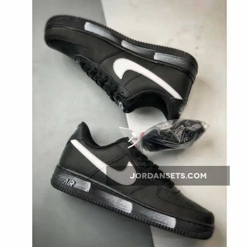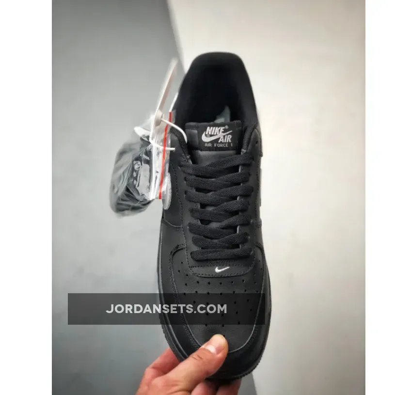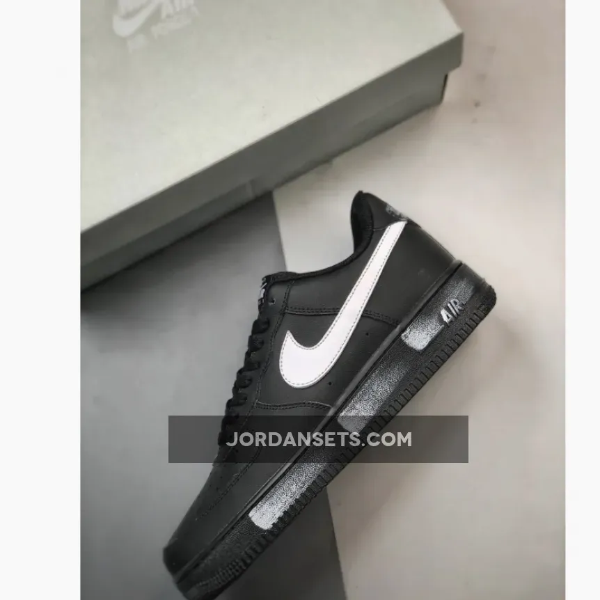 This version of the iconic Air Force 1 Low features a classic Black and White color scheme. The shoe boasts a full leather construction, ensuring durability and style. Perforations on the toe box enhance breathability, while the mesh tongues and inner lining maintain comfort. The all-Black upper, matched with black tongues, laces, inner lining, insoles, and AF1 rubber sole, creates a sleek and cohesive look. The White accents on the Swoosh logos, branded tongue tags, insoles, and heels complete the popular design.