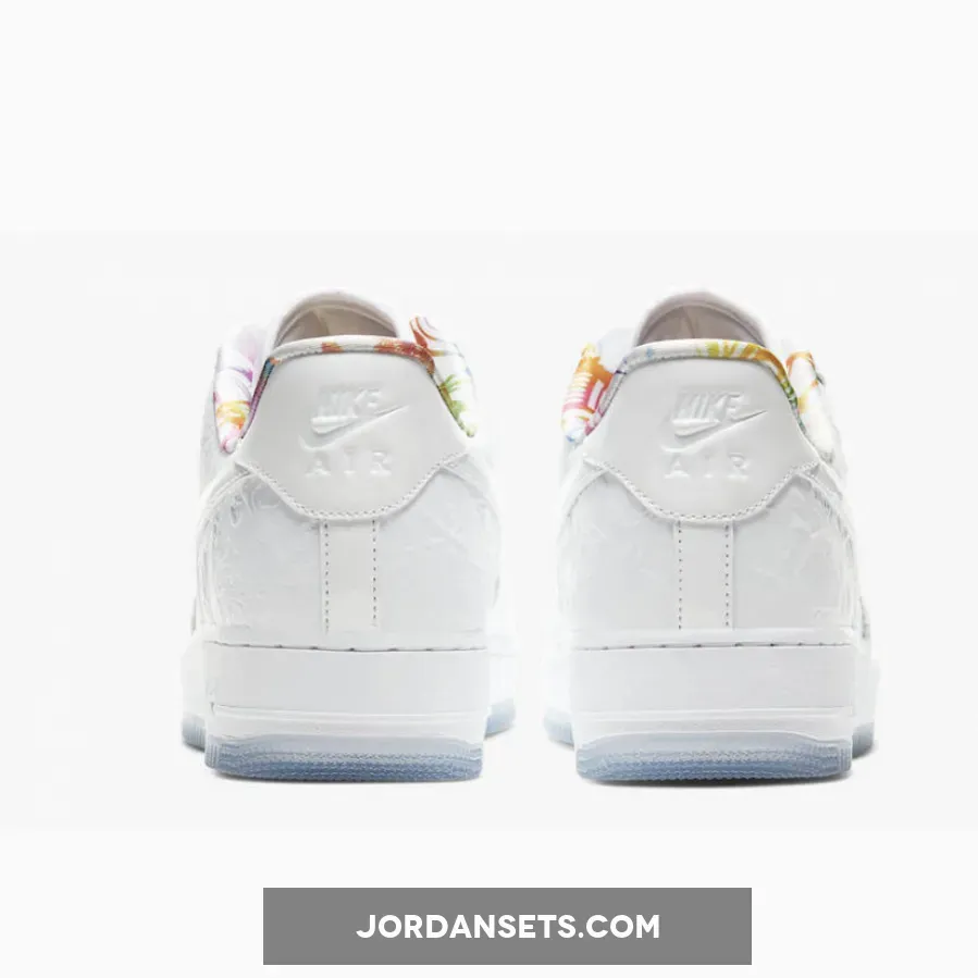 This Nike Air Force 1 Low features White across the upper while Chinese patterns are embossed throughout. We also have a smooth leather across the Swoosh logos while watercolors in bright shades land on the liner and insoles.