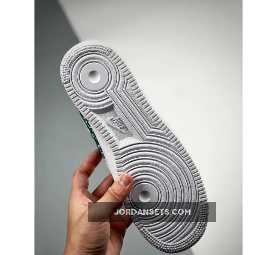 Give your outfits a fresh and modern touch with the Nike Air Force 1 Green Paisley. Released alongside its siblings — the Paisley Bandana and Black Paisley — this version also features the same simple but striking look. It boasts a triple-white colourway; the entire upper including the throat and ankle area are outfitted with pebbled white leather. Disrupting the colourless look of the shoe is the eponymous Green Paisley pattern in the Nike Swoosh and heel tab which acts as a garnish to this shoe’s delicious design.