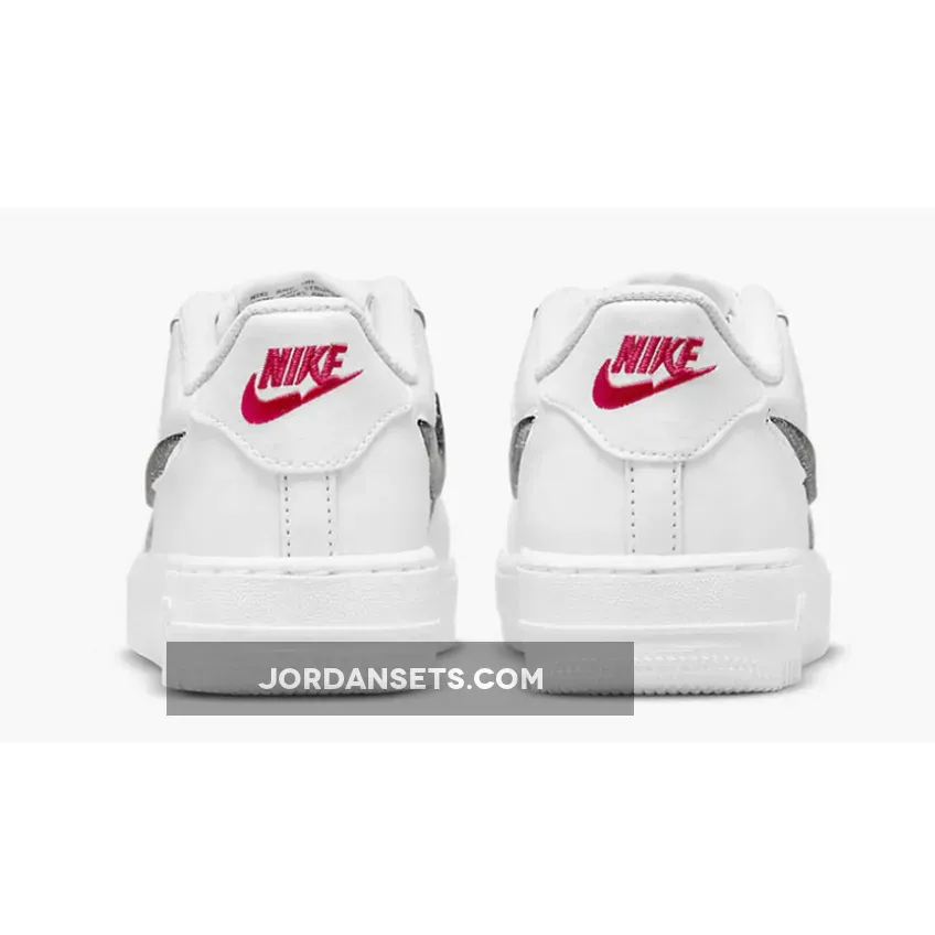 It’s easy to love classics with a twist like the Nike Air Force 1 GS White Metallic Silver. The iconic look of Air Force 1 gets a subtle playful update in this kid-exclusive design. Smooth white leather still dominates the upper, including the throat and ankle area. What makes this particular release stand out is the sparkly silver glitter finish of the Nike Swoosh which makes the logo stand out even more amidst its colourless background. Hints of red in the tongue and heel tab finishes off this simple but fashionable pair.