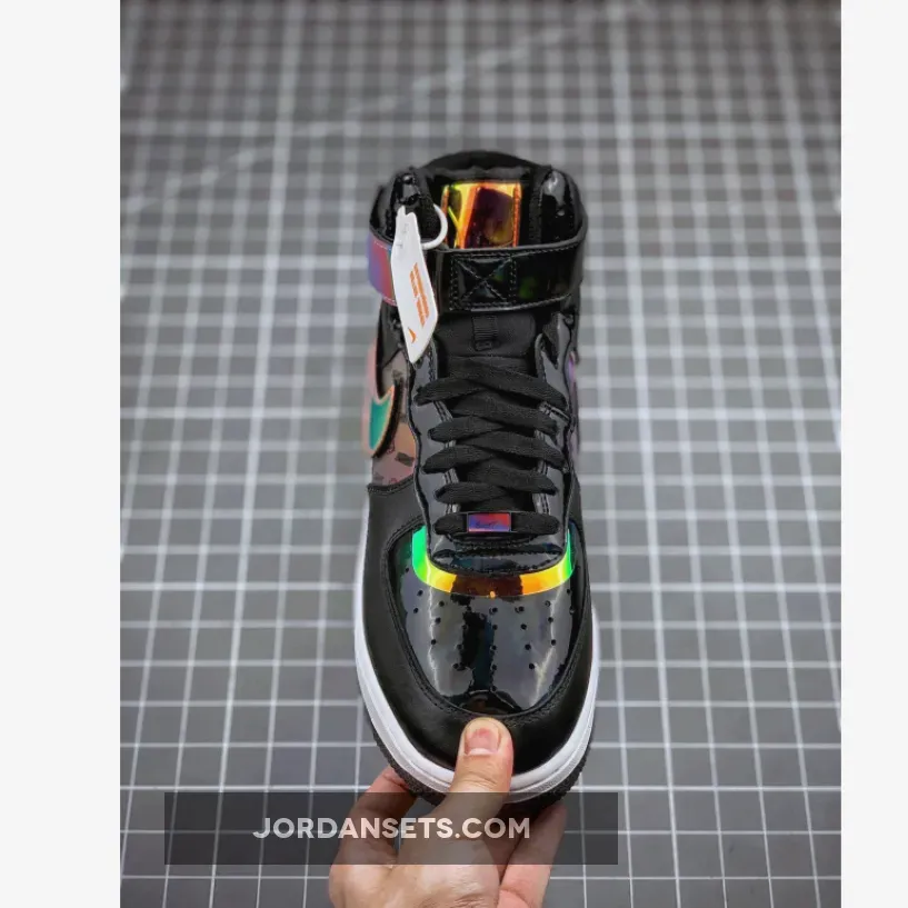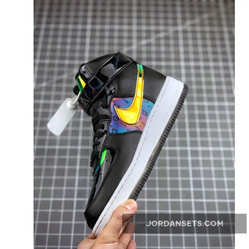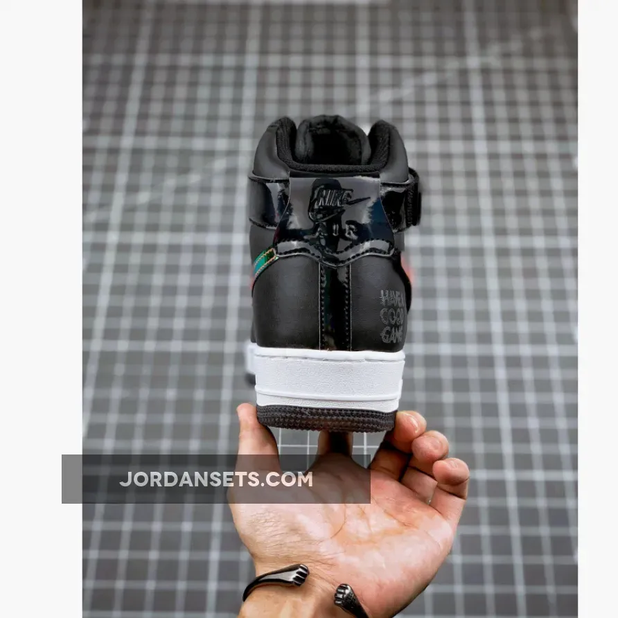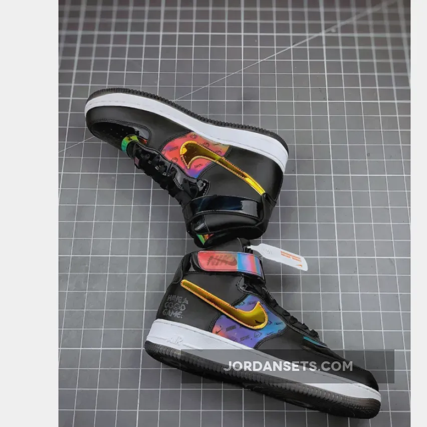 This Nike Air Force 1 High utilizes different materials which includes patent leather, velcro Swoosh logos, smooth leather and iridescent accents. Highlighting this pair is ‘Have A Good Game’ on the lateral side by the heel.