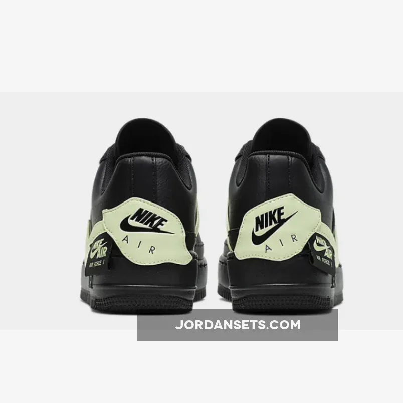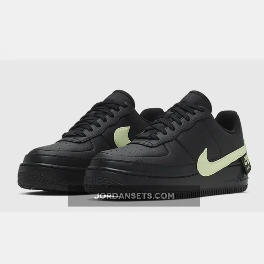 Solid design on the Air Force 1 Jester XX Black Volt! Love the mismatched Swooshes and minty green branding. Perfect for fall/winter vibes. #NikeAF1 #JesterXX #SneakerHeadMustHave.