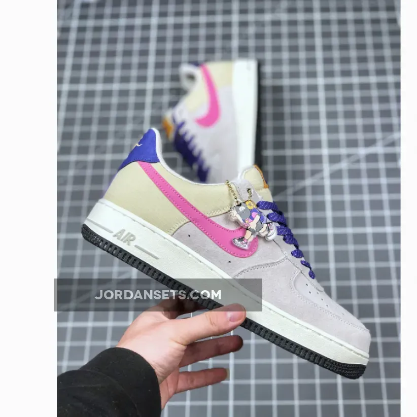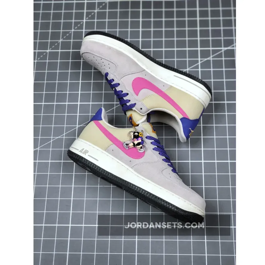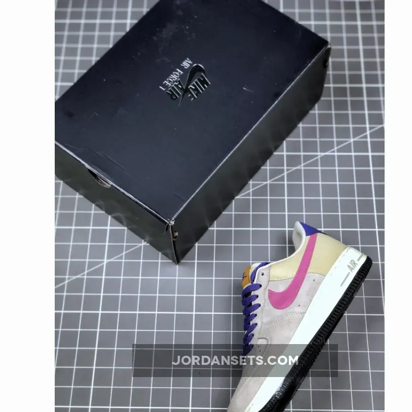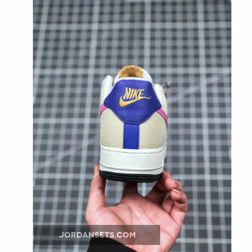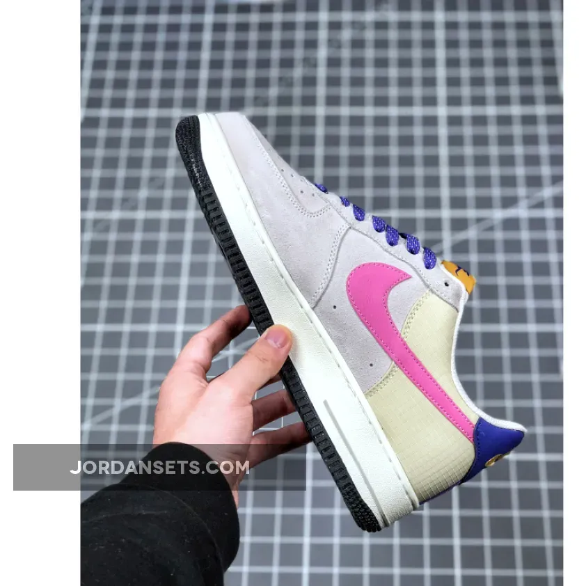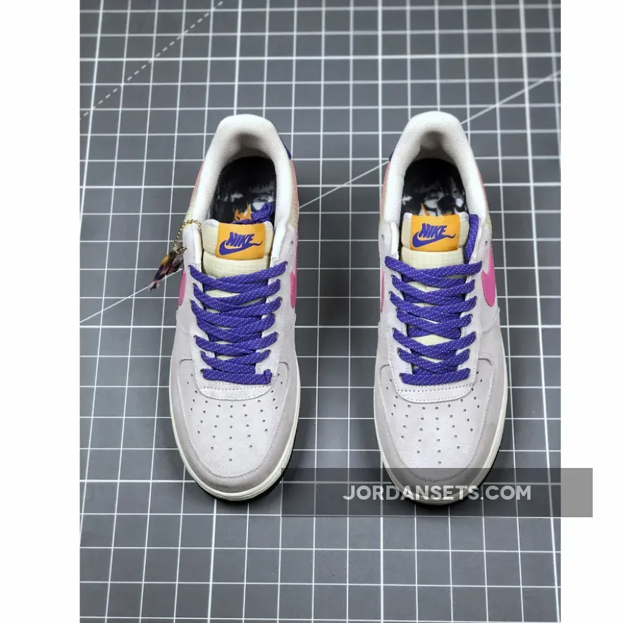 This offering of the Nike Air Force 1 Low features a Beige upper constructed in a mix of ripstop and suede highlighted with ACG-themed accents in a mix of Pink, Orange, and Purple. Flecked laces, an outdoors graphic on the insole with vintage Hike Nike character hangtags completes the design.