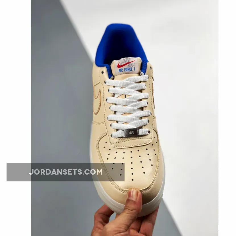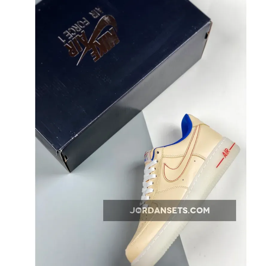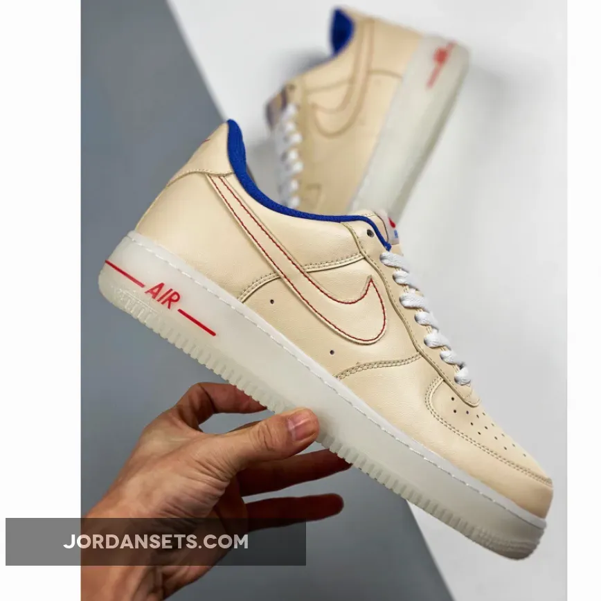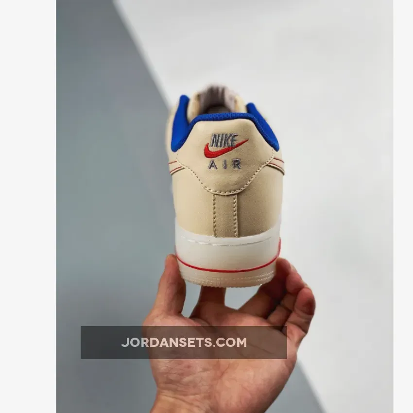 “I’m thrilled with my new Nike Air Force 1 Low Beige Blue ?! Shipping was super fast ⏰ and I love the unique color combo ?. The beige upper is comfy & stylish, while the red stitching adds a nice pop of color ?. Highly recommend ?!”