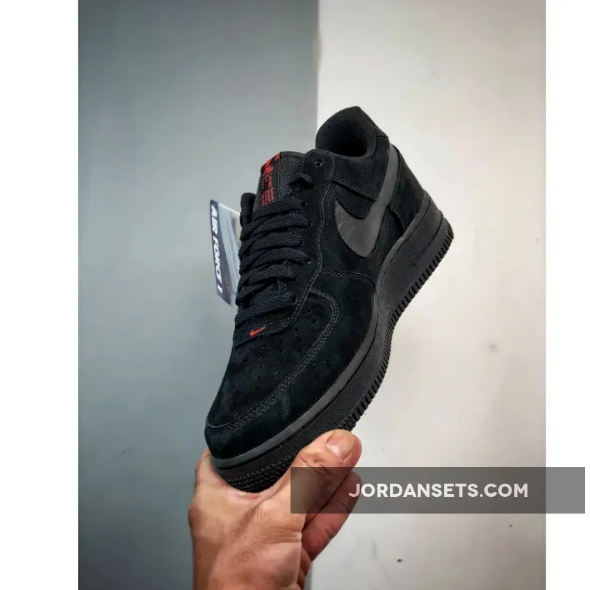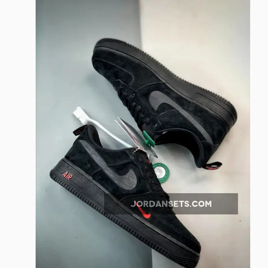 This offering of the Nike Air Force 1 Low features a Black suede base with mesh tongues and lining highlighted with Orange contrasting accents. Other details includes a rear pull tab, 3M reflective Swooshes atop a solid Black AF1 rubber sole.