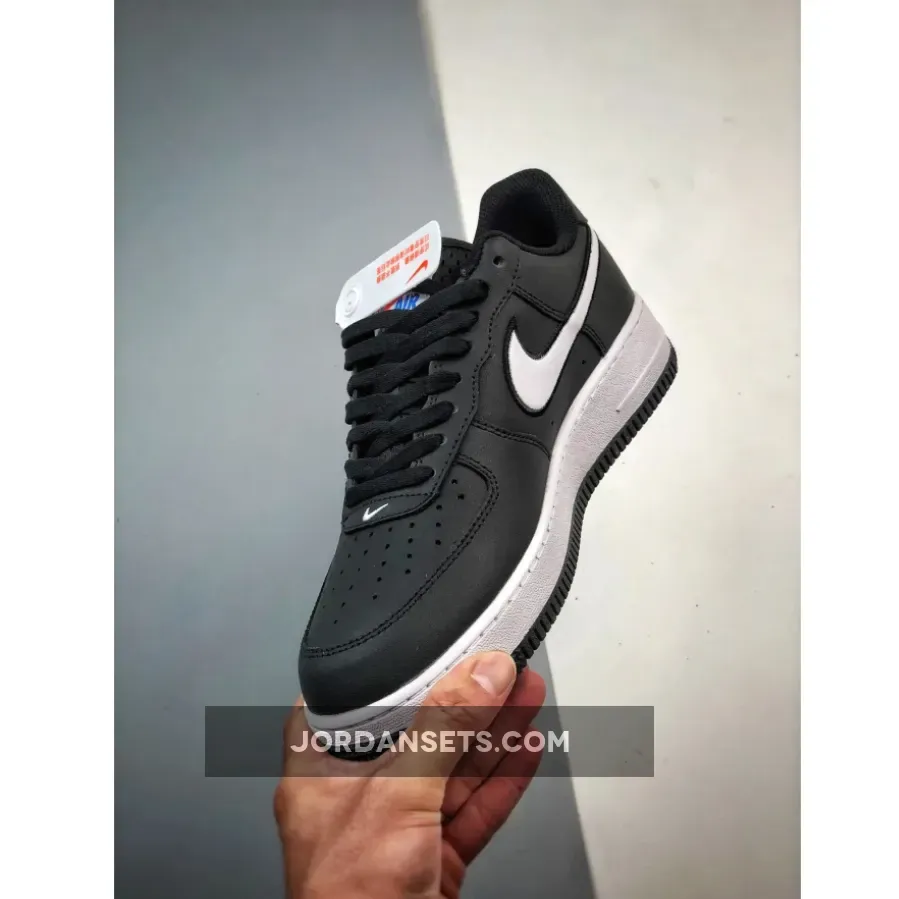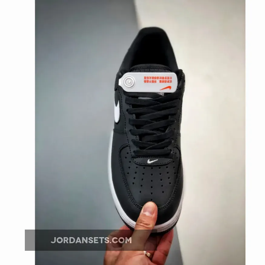 This low-cut AF1 keeps all the fundamental aspects of the iconic silhouette, but gets a refreshing overhaul via the oversized white signature profile Swooshes on both sides of the shoe that are meticulously fashioned out of pebbled leather and set off with contrasting black embroidered outlines. The tongues and sock liners are both black mesh, matching the rest of the upper. Of notable interest are the vivid blue AF1 tags that grace the outer ankle, a subtle nod to the illustrious past of the brand. Mini embroidered white Swooshes on the toe cap, a white midsole and a black rubber outsole wrap up the design of this sneaker.