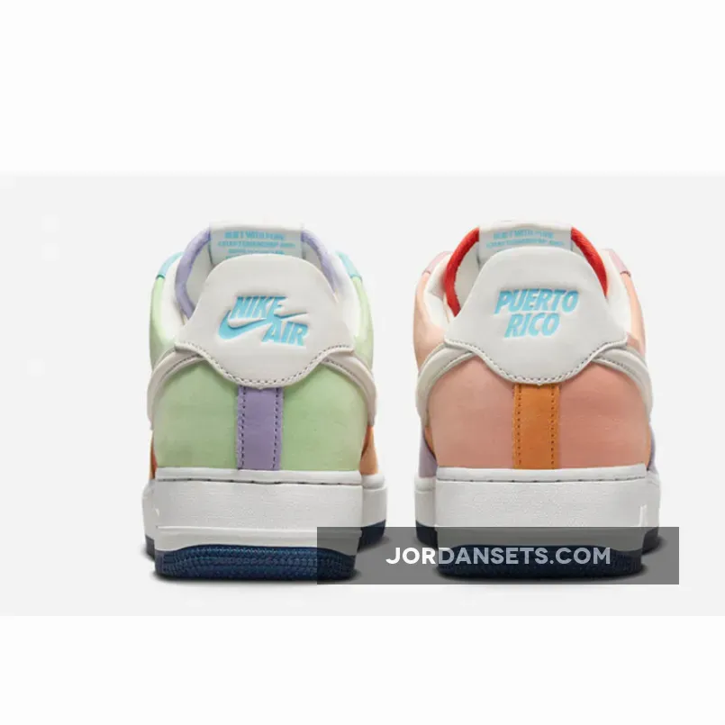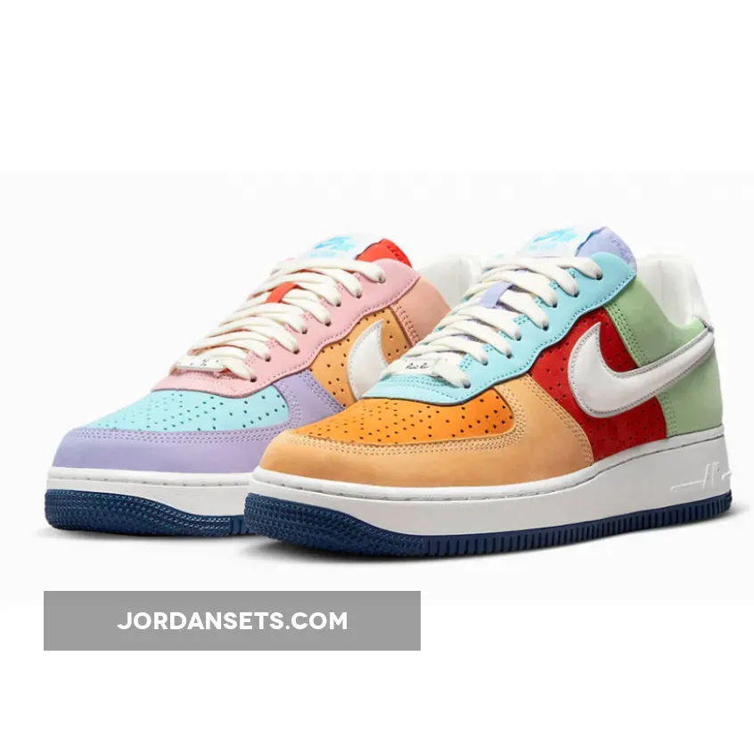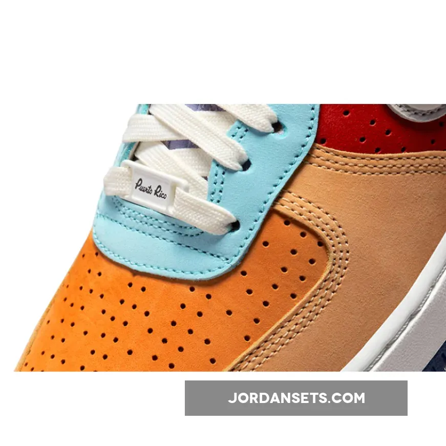 The Nike Air Force 1 Low Boricua Multi is Puerto Rico’s latest addition to the Nike Air Force 1 line-up. Although Nike has been under scrutiny for the former celebrations of the national holiday, they might have finally hit the nail on the head with the Nike Air Force 1 Low Boricua Multi. Dressed in a plethora of colours, this rainbow-covered AF-1 sees two mismatched trainers as part of a pair. The Nike AF1 has mixtures of orange, blue, red, green and purple take over the upper, with a lot of perforations on the toe box and sidewall.